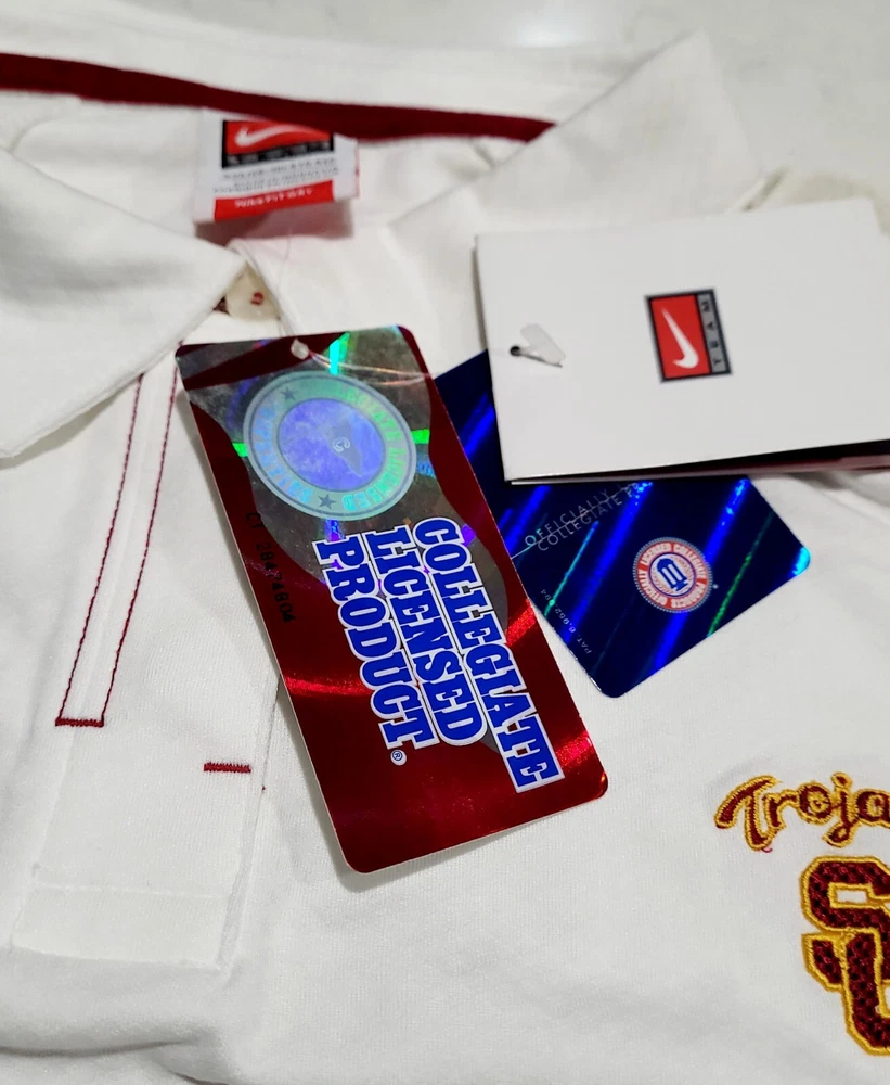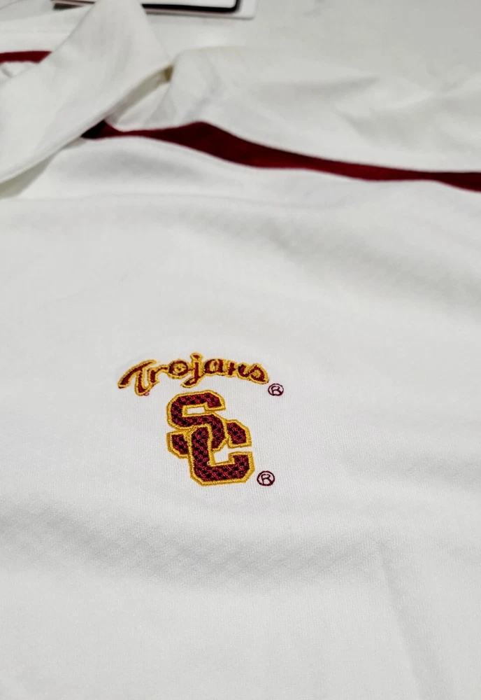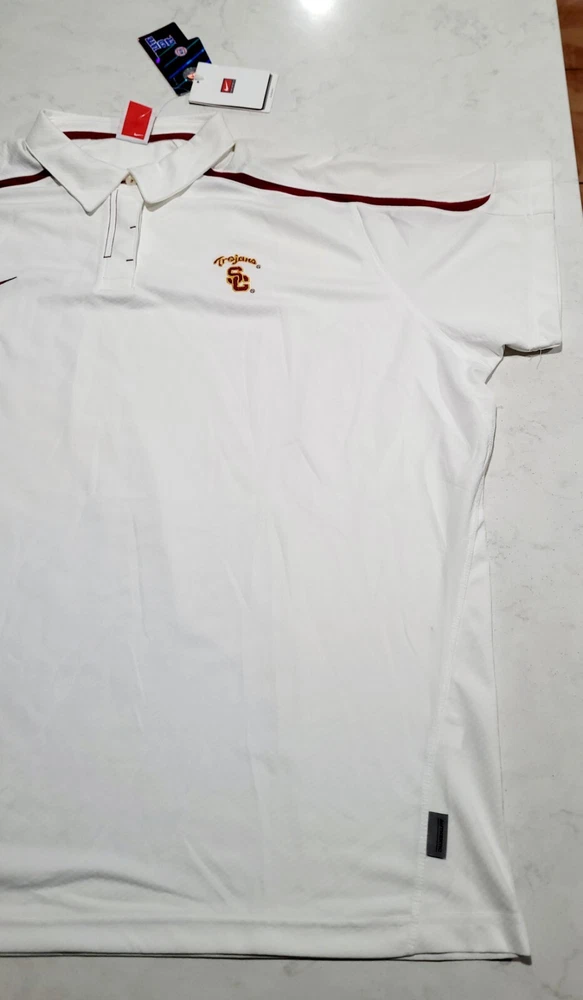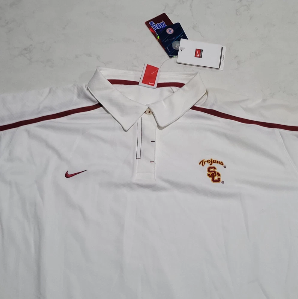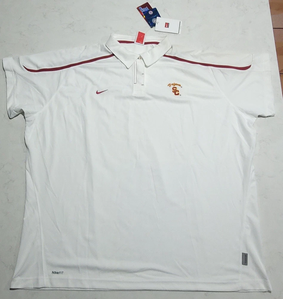 NEW WITHOUT TAGS. IN EXCELLENT CONDITION. NO STAINS OR DAMAGE. PLEASE VIEW ALL PHOTOS ABOVE FOR MEASUREMENTS AND PROOF OF CONDITION. STORED IN A CLIMATE CONTROLLED SMOKE-FREE AND PET-FREE HOME. SHIPS PROMPTLY AND SECURELY. Show off your USC Trojans pride with this authentic Nike Dri-Fit Polo in size 4XL, designed specifically for women. The white polo shirt features the official NCAA Championship logo and is officially licensed for your assurance of quality. Perfect for game day or any occasion, this basic style is ideal for any fan looking to support their favorite team. Representing the USC Trojans in style, this polo is perfect for any NCAA event or tournament. Made with high-quality materials, this Nike polo is sure to keep you comfortable and cool all day long. Don't miss out on the chance to add this piece to your collection.