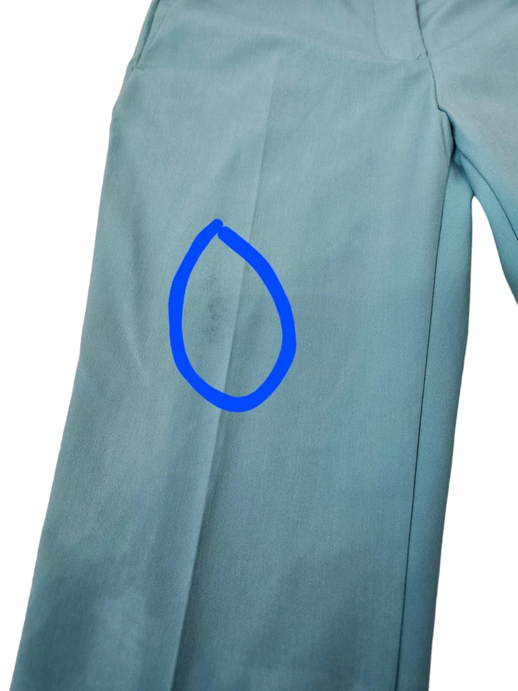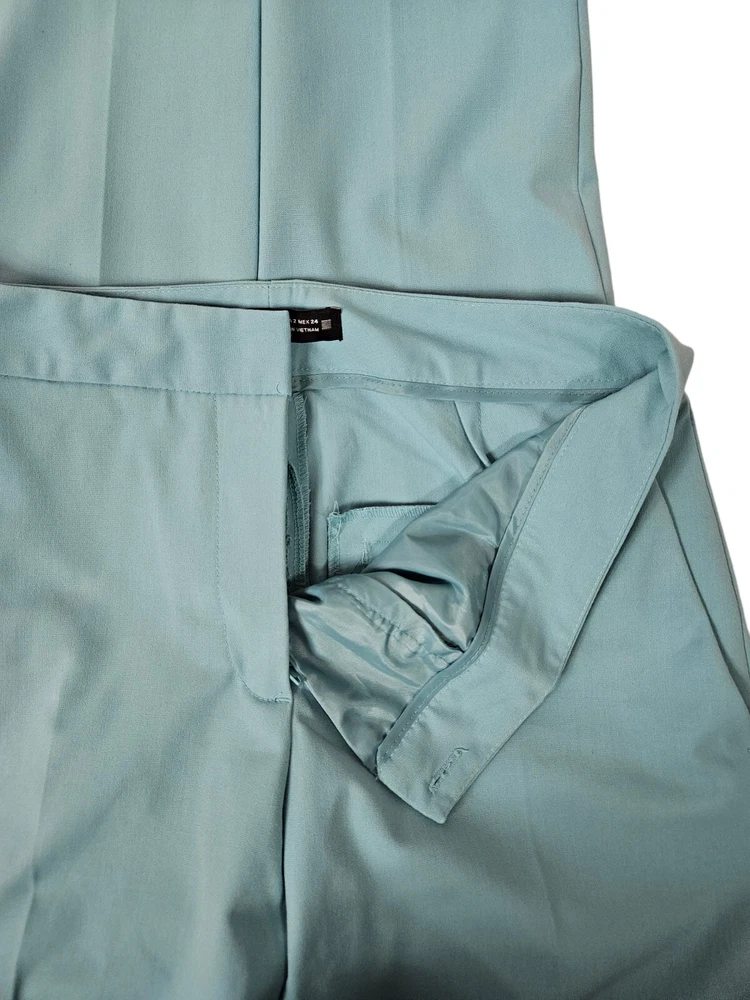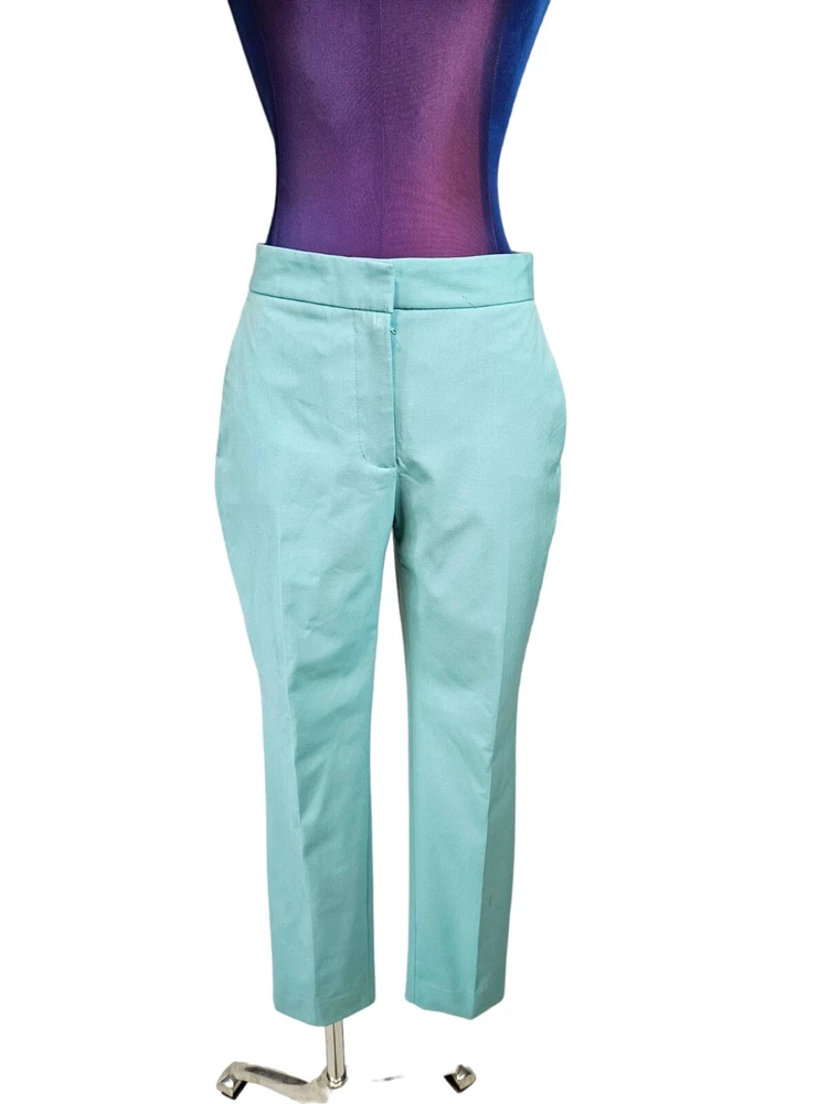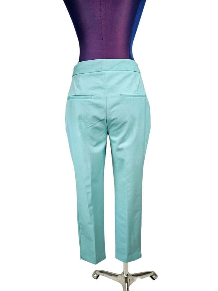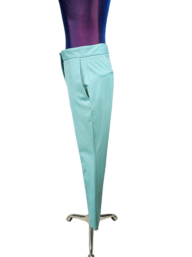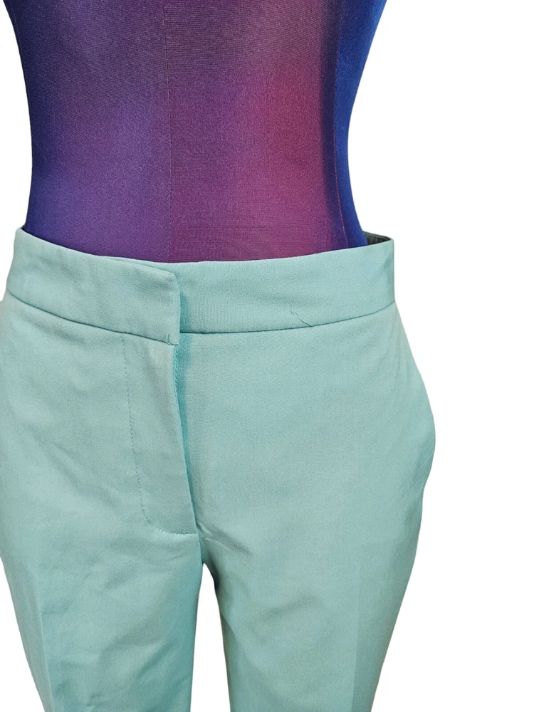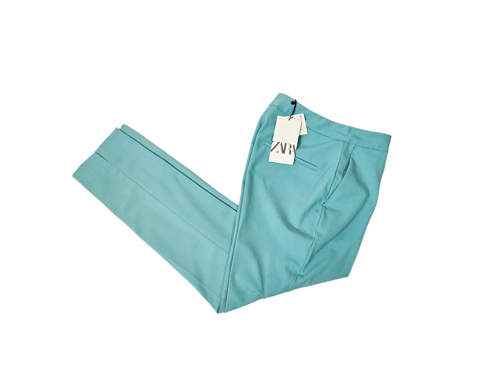 NWT Zara Tiffany Blue Ankle Dress Pants Size 2 Women's L60 New with tags Zara Tiffany Blue Ankle Dress Pants Size 2 Women's. Features beautiful Tiffany blue rayon fabric, ankle pants with side slit, hook loop and zipper closure, 2 slip pockets, 2 back pockets, dress pants. Measurements laying flat waist 12.5" front rise 9.5" inseam 26" hips 17.5" Fabric polyester, viscose, spandex This garment is new with tags, small spot from shipping on right thigh. Should come out when laundered.