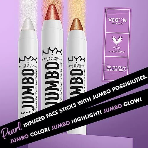 NYX PROFESSIONAL MAKEUP, Jumbo Multi-Use Face Highlighter Stick - Lemon Meringue Introducing the newest addition to the Jumbo fam, Jumbo Multi-use Face Sticks! Swipe on Jumbo color, Jumbo highlight, and Jumbo glow in a twist up stick! In 6 pearl pigment infused shades! Precise applicator for targeted highlighting. Blendable formula infused with Jojoba Oil for a smooth, even application. Get ready for Jumbo impact with our new Jumbo Multi-use Face Sticks highlighter. This weightless formula is buildable, so don’t be afraid to layer. Comes in a twist up stick, no need for a sharpener 6 pearl pigment infused shades: Ultra-smooth, pearl finish stick highlighter delivers a show stopping glow in just one swipe. Twist-up and swipe on cheek, nose, and face for an instant all over glow Face From Foundation To Finish: Complete your makeup look with our full line of face products to aid in color correction and coverage from concealer, blush, bronzer, foundations and contouring to palettes and powders Cruelty Free Cosmetics: We believe animals belong in our arms, not in a lab; All of our makeup is certified and acknowledged by PETA as a cruelty free brand; We don't test any of our products on animals Discover NYX Professional Makeup: Try all of our professional makeup products today from eyeshadow, eyeliner, and false lashes to liquid lipstick, lip gloss, primer, concealer, setting sprays and eyebrow makeup Shipping from the USA All of our products are shipped from the USA, ensuring quick delivery to your destination. Payment We offer the following payment methods: PayPal, credit card, bank transfer, and eBay's secure payment system. Free Shipping & Free Returns Shipping within the USA is FREE. Additionally, any return is absolutely free for you. Risk-Free Purchase You have the option to return an item within 30 days without any justification. We cover the return shipping costs! Fast Shipping We ship immediately upon receipt of payment. Generally, the package is delivered within 2-3 days in the USA. If it takes longer, we will contact you. Quality and Costs Made in Europe, USA, China No customs fees or additional charges Total satisfaction guarantee Invoice with declared VAT available upon request in .pdf format Feedback Your feedback is very important to us. After you pay for your purchase, you will automatically receive positive feedback from us.