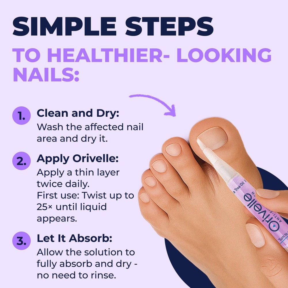 Nail Care Pen is a simple, effective way to support the natural appearance of your nails. Designed with a precision applicator, it makes it easy to apply the solution directly under and around nails, helping to reduce visible discoloration and brittleness. This professional nail repair pen is enriched with tea tree oil and other conditioning ingredients, leaving nails looking smoother, clearer, and healthier over time. Unlike messy alternatives, the innovative pen design provides precise, targeted coverage with no waste. Perfect for daily use, Nail Care Pen helps refresh and maintain the look of your nails so you can feel confident and comfortable. Nourishes & Conditions: Helps restore the look of clear, healthy-looking nails by moisturizing and conditioning nail surfaces. Easy Precision Application: The pen-style applicator delivers the solution directly under and around nails without mess or waste. Supports Nail Appearance: Designed to reduce visible discoloration and brittleness, improving the natural look of damaged nails. Daily Nail Care: Gentle enough for everyday use as part of your personal grooming routine. Trusted Quality: Crafted with tea tree oil and other carefully selected ingredients to support smooth, refreshed, and natural-looking nails. IMPORTANT: Turn over 25 times before first use!