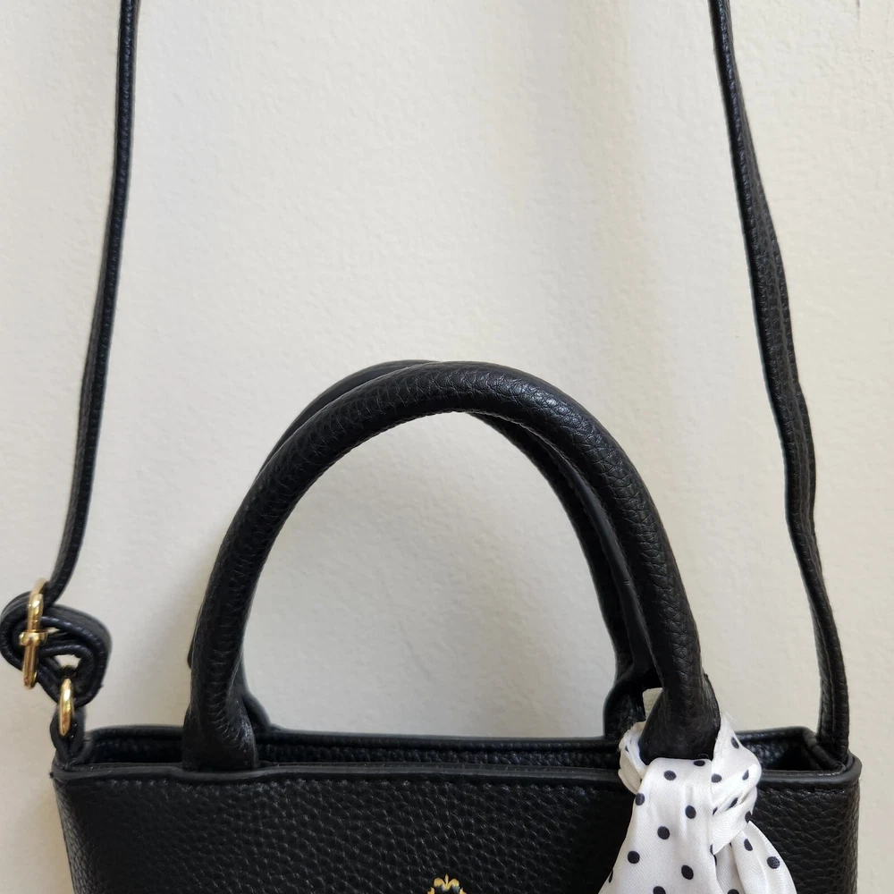 Nanette Lepore Black Vegan Leather Adjustable Crossbody Bag Mini Tote Scarf - Pre-Owned in Very Good Condition - Measurements in Photos - Returns acceptable within 30 days of purchase unworn, in original condition - Check out my E-bay Store. Lots of Choices Available. Reduced shipping for 2 or more items. Let me know before you pay so I can send you an invoice to discount the shipping