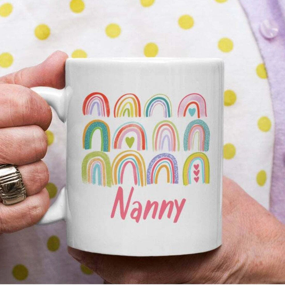 Nanny Rainbow Mug Personalised Back Or Grandma Nan Etc From Uk Gift For Her Product Details.. This high quality 11oz. ceramic white mug has a premium hard coat that provides crisp and vibrant color reproduction sure to last for years. Perfect for all hot & cold beverages. The highest quality printing possible is used. It will never fade no matter how many times you wash it. Material: 100% Ceramic. Print both sides. Dishwasher and Microwave Safe. High Gloss + Premium White Finish. Printed in the U.S.A. Personalized & Custom. We support personalized and custom mug to add custom, when placing an order, you can add notes to the "order note" in shipping address section. Also you can contact us directly via message. Shipping Info. Ready to ship in 1 to 2 business days, All products are made-to-order and proudly printed in the United States. Shipped by USPS and DHL, You will receive your order in 5-7 days. Replace & Refund. All products are defective during shipping broken, chipped will be replaced free of charge. You are not satisfied with the product, we will refund 100% money to you. If any other issues arise, please do not hesitate to message, we would be more than happy to assist you.