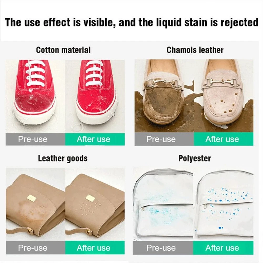 Nano Rain And Stain Spray,Shoe Protecting Spray,Water Resistant Spray For Shoes,Shoe Waterproof Spray Plastic Outdoor,Water Resistant Shoe Spray,(100ml) About this item woes and stubborn stains with our nano rain and stain spray. One spray will make your shoes and boots instantly dirt, water and rain resistant and enjoy refreshing comfort! Advanced nano-technology:our spray harnesses the power of nano-particles to create an ultra-thin protective layer. This layer repels water droplets, preventing them from soaking into surfaces and causing damage. Long-lasting effect:a single application of our nano rain and stain spray provides long-lasting . Its advanced nano-technology creates an barrier that repels water and stains from setting in. Versatile :whether it's your favorite jacket, suede shoes, or carpet, this spray is suitable for various surfaces. your belongings from water damage and unsightly stains. Easy application:applying the spray is a . Simply spray it evenly on the surface, let it dry, and watch as it creates an protective shield. No more worries about getting caught in the rain or accidental spills. PACKAGE LIST 1/Waterproof detergent