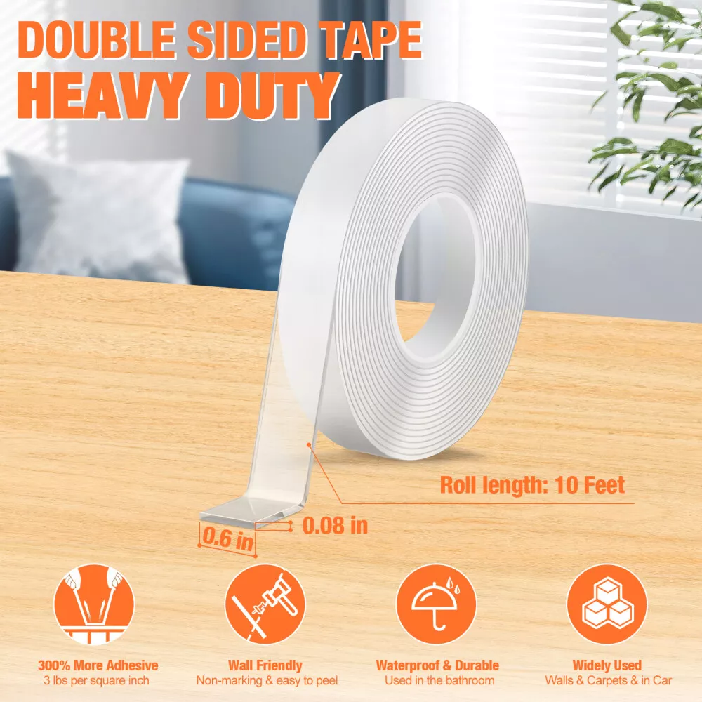 Nano Super Tape Double Sided Heavy Duty Reusable Adhesive Stick Transparent Tape Visit Our Shop H ot Sale Pro motion Contact Us Description STRONG ADHESIVE Our nano glue allows easy and damage-free attachment of items to the wall.Made of leading acrylic gel material, this clear adhesive double-sided tape demonstrates strong durability and adhesion, three times that of conventional tape. And it is very easy to remove and leave no residue. MULTI FUNCTIONAL DOUBLE-SIDED TAPE The double-sided transparent tape can be used for car phone holders, posters, picture frames, pen holders, wall stickers, hooks, small tools, sticky pads, phone cases, patches, decorative items, and wall decor. Additionally, this tape is washable and reusable. SAFE NANO GEL MATERIAL: This double sided mounting tape is non-toxic, environmentally friendly and recyclable. transparent, no residue, removable. STRONG STICKY: Unlike ordinary tapes, this washable adhesive tape is used the most advanced nano-technology, made of the latest acrylic gel material, ensuring high viscosity, durability, elasticity, and residue-free performance. It adheres perfectly to smooth, clean, non-porous surfaces like glass, windows, doors, wardrobes, table tops, bathroom tiles, and marble. Not suitable for powder wall, plaster wall, rough wall, or paint wall to prevent wall damage. WASHABLE & REUSABLE: The reusable transparent two sided tape can be easily cleaned with water when dirty, but avoid using other wipes or detergents. Simply wash and dry the tape to restore its stickiness for repeated use, with the caveat that the number of uses may vary depending on viscosity. EASY TO USE: Easily cut to any size and length you want! It can be stretched, bending and folded out of shape to meet your needs. The transparent double-sided tape is very easy to remove and leave no residue. MULTI-FUNCTION AND NO MORE MESSY: Say goodbye to disorderly small items with this removable mounting tape. It is versatile and can be used in various settings such as home, office, wardrobe, and bathroom. Use it to easily fix frames, photos, festival decorations, posters, carpets, power sockets, wall stickers, hooks, small tools, pads, phone cases, patches, , wall decor and more, lightweight items. Payment We accept PayPal Only! Import duties, value added taxes and any other charges are not included, Buyers are responsible for import duties, custom fees and taxes, if any. Please check with your country's custom office to determine the additional costs impose on the item prior to buying. We are absolutely NOT responsible for any import tax or Customs duty. Shipping 1)All items will be shipped to your ebay address .Please update your latest address when you check out,and please make sure to provide us with correct,precise and detailed shipping address. 2)All items will be shipped in 1-2 business days (excluding Sat,Sun & Holiday) after payment received and cleared. For the long-time holiday, we'll post the info on our store and reply you automatically via emails. 3)If you don't receive items over 30 business days,please make sure to contact us before leaving any neutral or negative feedbacks.We'll try our best to help you solve the problem. Return Your satisfaction is our main concern, so we try ensure your order is perfect in every way. However, things can occasionally go wrong and you wish return any item bought from us within 30 days of receipt for a refund or have the item exchanged. This can be for any of the following reasons - You need to exchange for a different item. You simply don't like your item. The wrong item was sent. The order was faulty or damaged. In the result of you wanting to return an item, you have 30 days to do so, in your return please include reason and action you would like to be taken. The buyer is responsible for the return postage, and if an exchange is required then extra postage cost will need to be paid. In the rare case of a faulty item or wrong item received then please get in contact with our customer service team and we will get the problem resolved as quickly as we can.