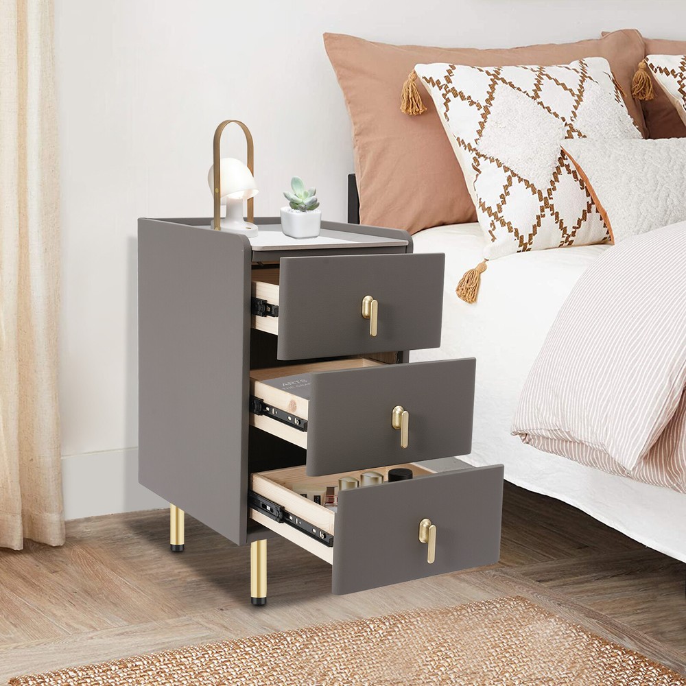 This slim nightstand is a game-changer! Fits perfectly in tight spaces and holds all my bedside essentials. The three drawers are surprisingly spacious and the modern dark grey finish looks sleek. Assembly was straightforward and it feels really sturdy. Perfect for any room!
