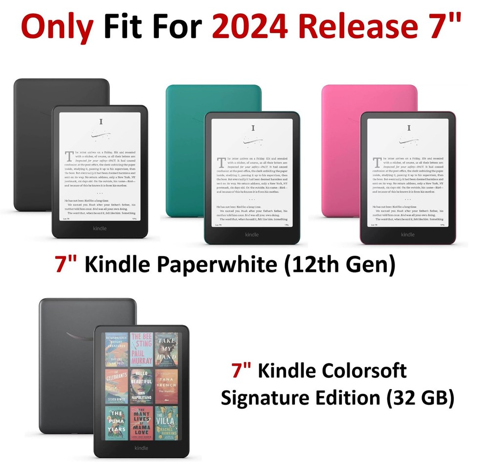 1. Perfect Fit: All-new 2024 Release 7" Kindle Paperwhite (12th Gen) & Kindle Colorsoft Signature Edition —will not fit other prior generation Kindle devices 2.Durable: Premium waterproof PU leather exterior, anti-scratch microfiber interior, durable finish that is splash-proof, fits like a glove 3.Auto-Wake/Sleep: auto-on / auto-off when I open/close - no need to wear out that power button,Magnetic closure keeps the cover securely closed 4.Easy Charge:Device can be charged with case closed,support wireless charging 5. Tip:This product has a protective film on both the front and back of the acrylic backboard