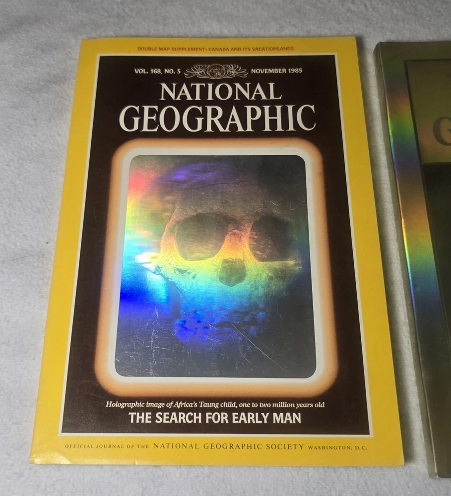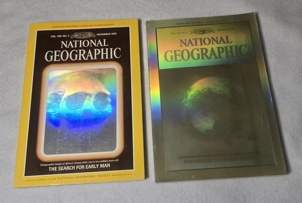 Explore the world with this National Geographic collector's edition set. The set includes two holographic magazines, published in November 1985 Vol 168, No 5, and December 1988 Vol. 174, No. 6, respectively. Immerse yourself in captivating articles and stunning photography that showcases the beauty of nature and the diversity of cultures. With English as the language of choice, this set is perfect for travel and geography enthusiasts. The magazines feature topics such as nature, photography, and exploration, making them a great addition to any collection. Get ready to embark on a journey of discovery and inspiration with this National Geographic set.