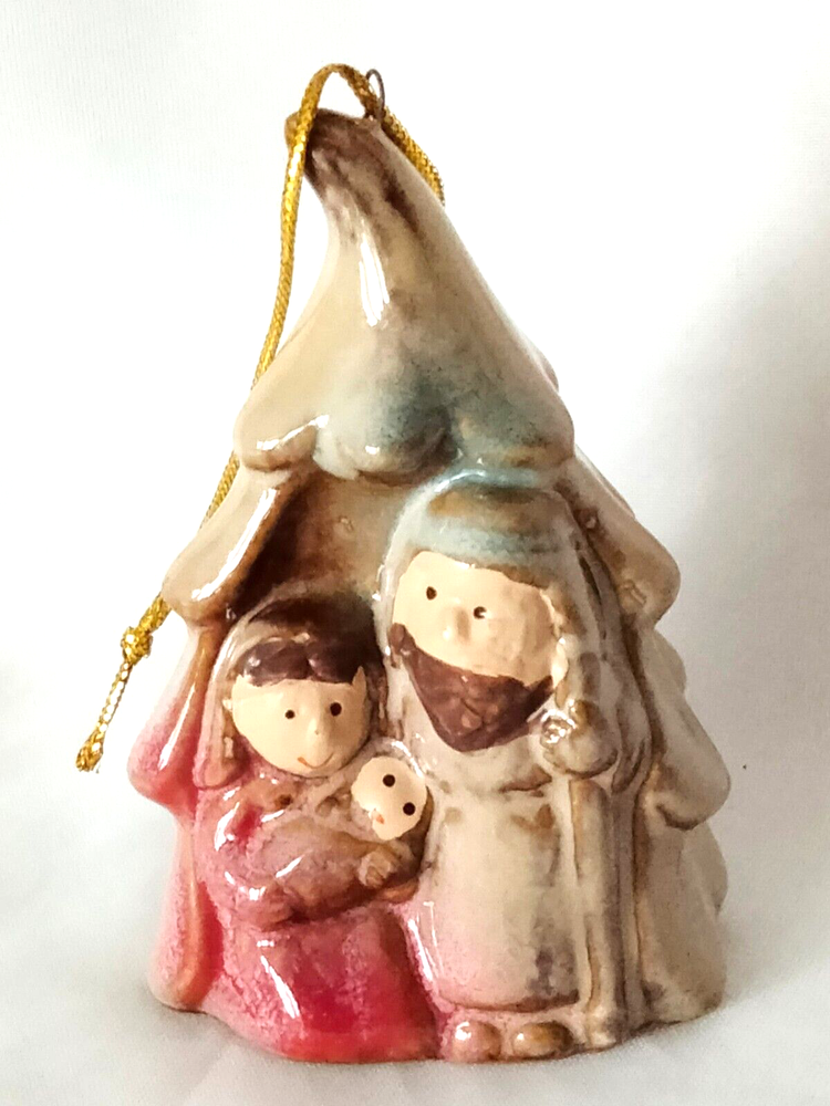 Celebrate the festive spirit with this charming Nativity Christmas Ornament Bell. Crafted from high-quality ceramic, this medium-sized ornament features the Holy Family - Baby Jesus, Virgin Mary, and Joseph - nestled within a beautifully designed Christmas tree shape. Its multicolored palette adds a vibrant touch to your holiday decor, ensuring that the true meaning of Christmas is subtly yet elegantly displayed.This decorative piece is not only a figurine but also a functional hanging ornament, perfect for adorning your tree or any space that needs a touch of the holiday theme. With its intricate details and hanging feature, it makes a wonderful addition to your collection or as a thoughtful gift for someone special during the season of giving.