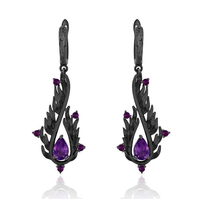 Natural 2.10Ct Amethyst 925 Sterling Silver Handmade Vintage Drop Earrings