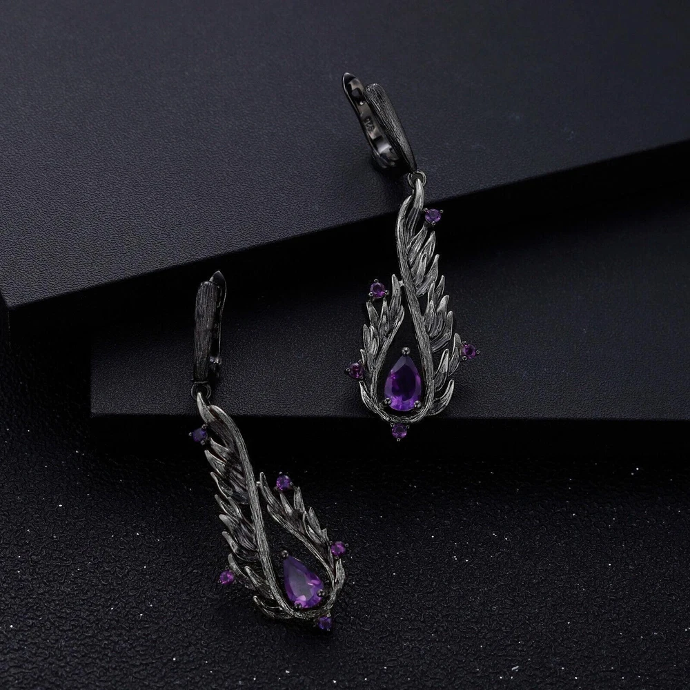 Metal:Sterling SilverMaterial:GemstoneMain Stone:AmethystMain Stone Shape:PearType:EarringsBase Metal:Fine Silver, 925 Parts Per 1000Certification:GTCMetal Purity:925 Parts Per 1000Main Stone Creation:NaturalSecondary Stone:AmethystTotal Carat Weight:2.10CtBrand:UnbrandedMain Stone Size:5*8mmOccasion:Anniversary, Birthday, Engagement, Valentine's Day, Wedding, PartyTheme:BeautyHandmade:YesMain Stone Color:PurpleStyle:Dangle/Drop