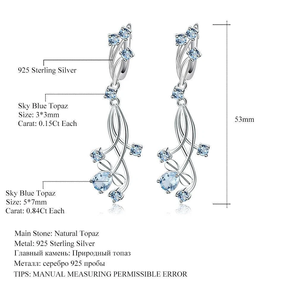 Natural 3.89Ct Sky Blue Topaz 925 Sterling Silver Drop Earrings for Women