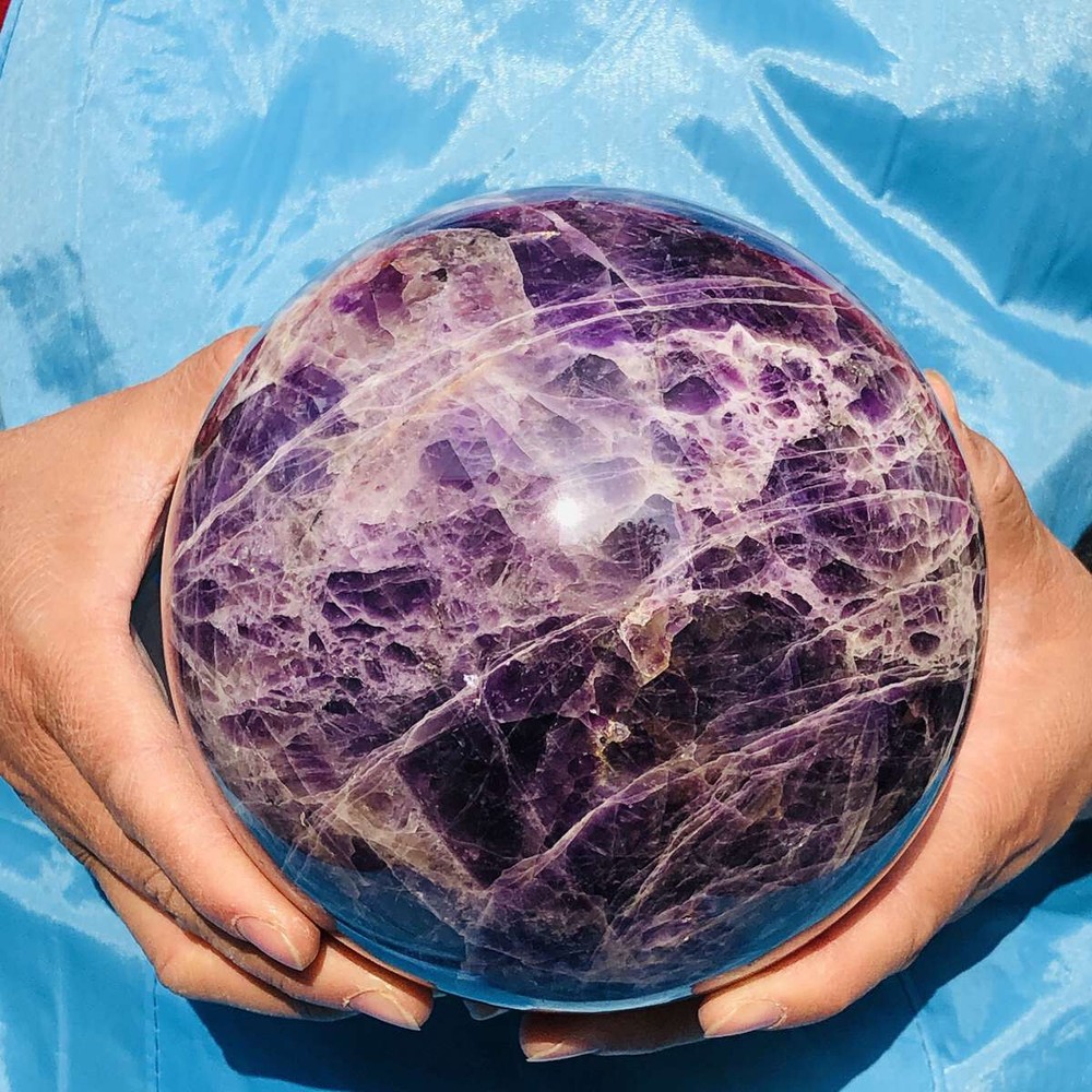 This stunning amethyst sphere is absolutely mesmerizing! The deep purple hues and natural patterns make it a beautiful centerpiece. It feels solid, well-polished, and has a calming energy—perfect for meditation or decor. Shipping was fast, and it arrived safely packaged. Highly recommended for crystal lovers!