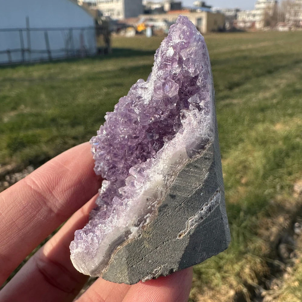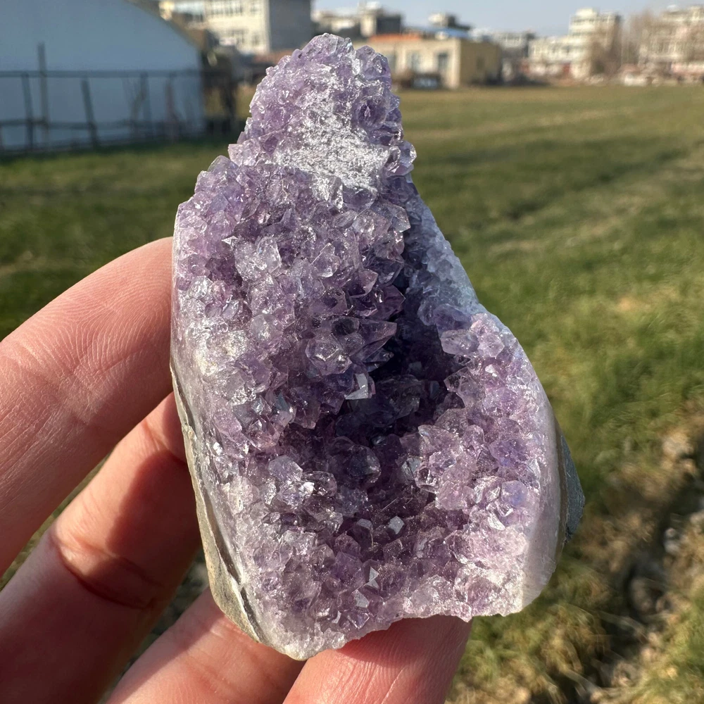 Natural Amethyst Geode Quartz Cluster Crystal Specimen Cut Base