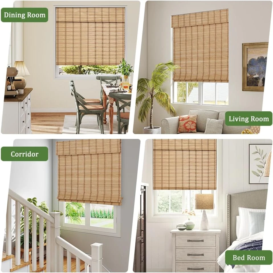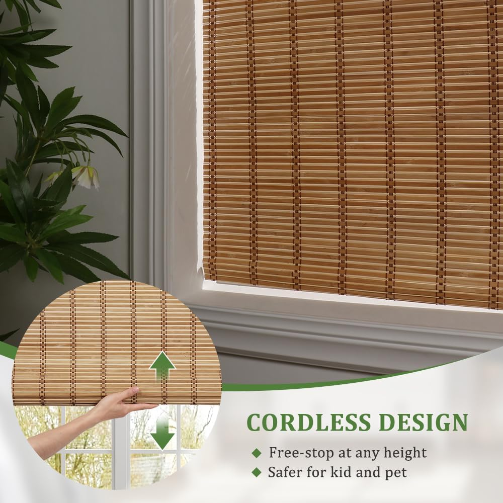 Cordless Bamboo Roll Up Blinds for Windows Light Filtering Natural Wood Shades