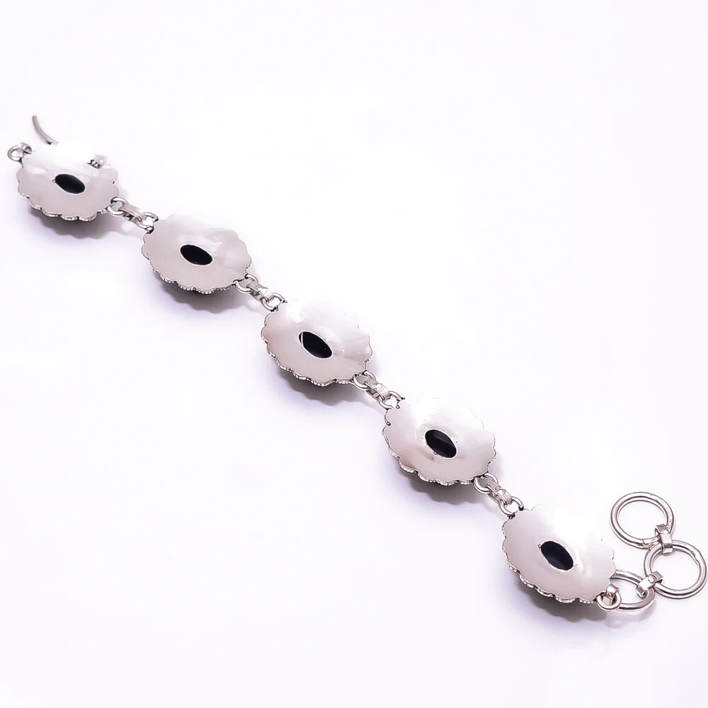 Charm Type Italian Modular Theme Beauty Main Stone Depth As Seen in Picture Main Stone Length As Seen in Picture Main Stone Width As Seen in Picture Seller Warranty Yes Shape Round Sizable No Wholesale Yes SKU B_9119_391_6 Signed Yes Unit Quantity 1 Unit Type Unit Type Bracelet Style Tennis Metal Sterling Silver Metal Purity 925 Parts Per 1000 Base Metal Sterling Silver Material Gemstone Main Stone Black Onyx Main Stone Creation Natural Main Stone Color As Seen in Picture Main Stone Shape As Seen in Picture Main Stone Treatment Natural Item Length 8.99" Total Carat Weight 132.5 Ctw Features Adjustable Brand Unbranded Customized No Country of Origin United States Color As Seen in Picture Closure Toggle Chain Type Round Link Country/Region of Manufacture India Cut Grade Very Good Setting Style collet setting Number of Gemstones 5 Number of Diamonds As Seen in Picture Gemstone Clarity Grade Slightly Included Diamond Color Grade Not Applicable Diamond Clarity Grade Not Applicable Colored Diamond Intensity Not Applicable Certification Yes Occasion Christmas, Birthday, Anniversary, Engagement, Wedding, Valen Shipping & Handling - Charge - 1st item-5.90 And Additional item-1.90 Handling Time - 1 Days . Delivery Time - 2 TO 3 DAYS. Shipping Service - USPS First Class Package 2 -3 Days. Returns - 1.We offer a 100% Money Back Guarantee minus shipping for 30 days after receiving the Item / item's. 2..The item must not be altered or damaged in any way shape or form. 3.Upon receiving these items your payment will be refunded. 4.Email us for return instructions before sending merchandise back. 5.Please allow up to 1 business day for all returns to receive credit. 6.Sizing does not affect the return policy. Payment - We accept PayPal for Payment ,should made with in 14 days once buying or winning done , in case of late information expected .