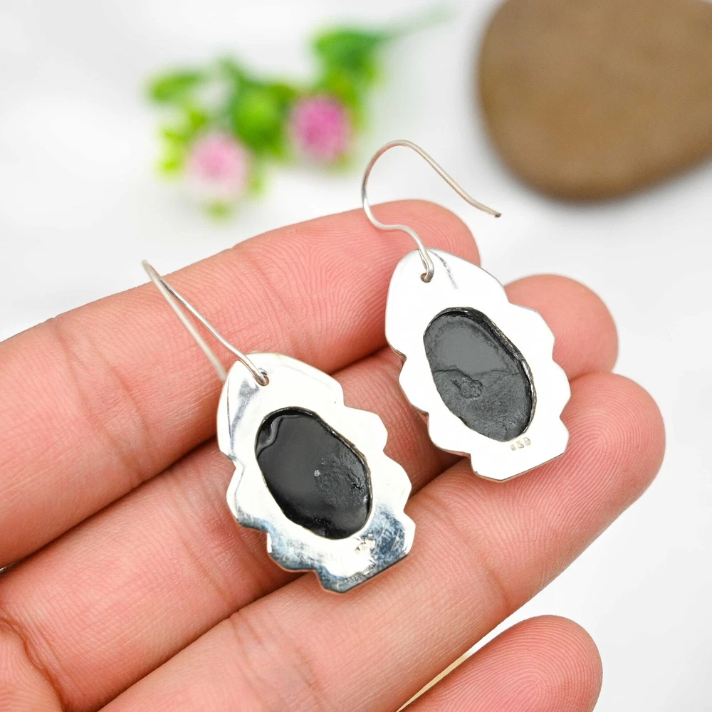 HomeNatural Black Onyx Gemstone Earrings 925 Sterling Silver Handmade Jewelry Gift