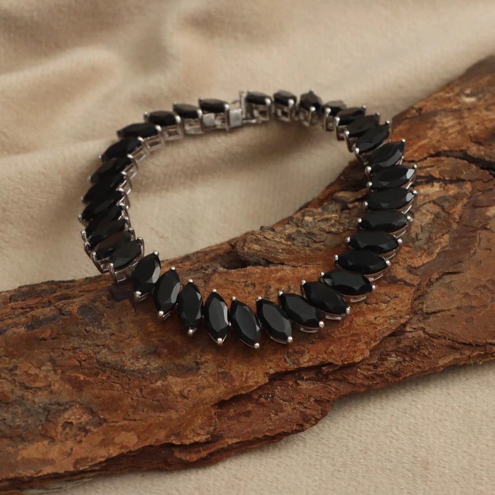 ? PRODUCT DETAILS ? ? SKU:- BST-306-BOX ? Product:- Bracelet ? Metal:- Sterling Silver ? Metal Purity:- 925 ? Plating Available:- Yellow Gold, Rose Gold, Black Rhodium ? STONE DETAILS ? ? Stone Name:- Onyx ? Stone Size:- 10x5 mm ? Stone Shape:- Marquise ? Stone Color:- Black ? Stone Cut:- Faceted ? Birthstone:- July ? Important things to know before buying ? ? If you have any questions, please message me here! Thank you for your time and have a wonderful day! :) ? COLOR VARIATION ? ? Images Are Enlarged To Show Finest Details Of The Stone. All Gemstones Are Natural And Some Color Difference And/or Variations In Natural Textures Are Obvious. ? CUSTOMIZE ORDER ? ? We accept customization, contact us for Custom and Wholesale orders. Contact me if you need a larger quantity. Thank you for viewing and please check out the other wonderful items I have available for sale in my shop. Please Convo First to Get The Best Price. ? DELIVERY TIME ? ? It Will Takes Approx. 1.5-2 Weeks To Get Parcel Deliver To USA, And 2-3 Weeks To All Of The Countries. All Orders Would Be Shipped Within 1 To 5 Business Days. ? SHIPPING SERVICES ? ? We Are Use FedEx for Express Shipping USD 30.00 Flat Rate, It Takes 7-10 Days with 100% Insured and Online Tracking. ? CUSTOMER SERVICE ? ? Please contact us with any questions or concerns. We will always do our very best to leave you a happy customer. All inquiries will receive a reply within 24-48 hours. Thank You for Looking at Our Shop !!!!!