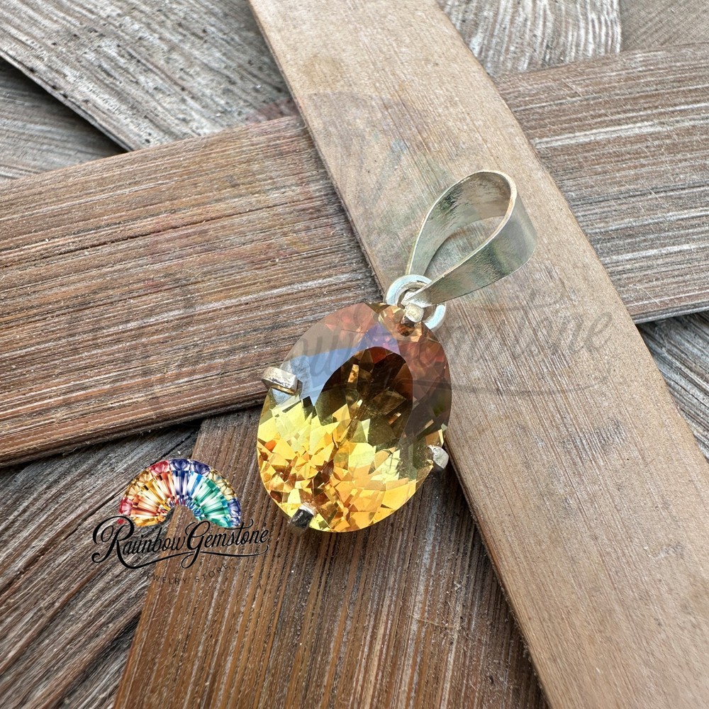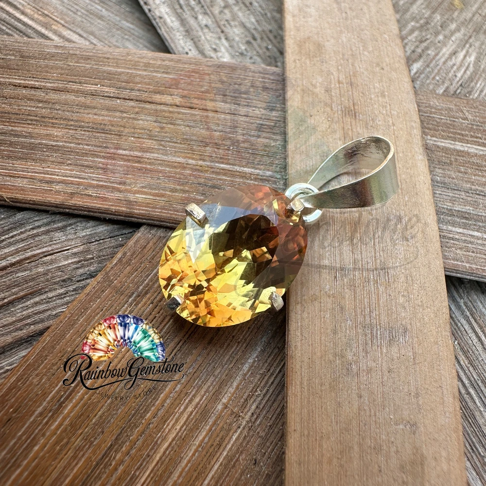 Natural Certified Yellow Citrine 13.60 Ct Loose Gemstone 925 Sterling Silver Pendant Jewelry