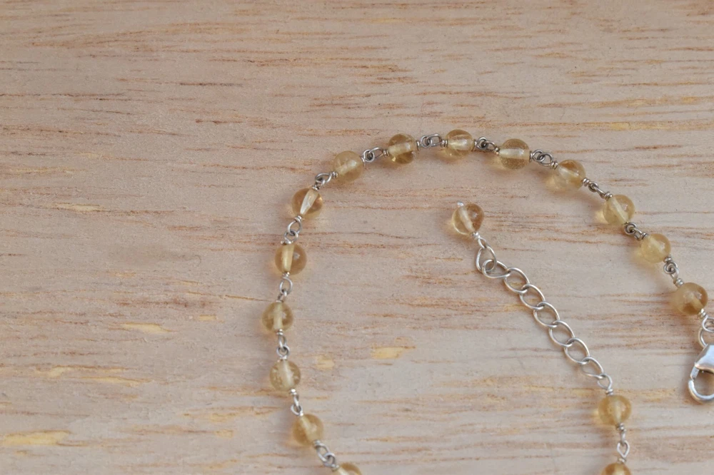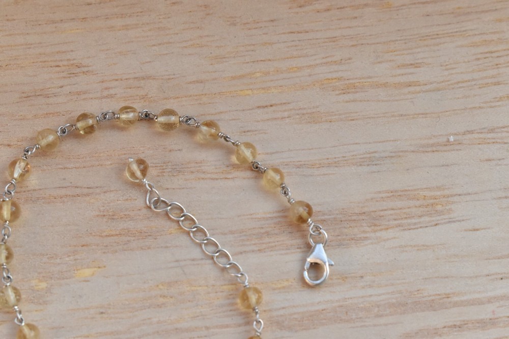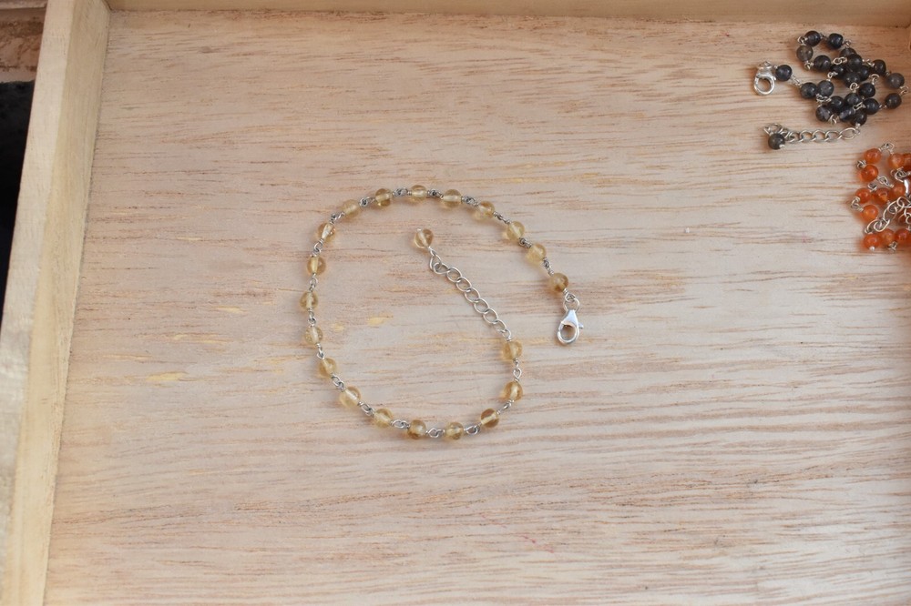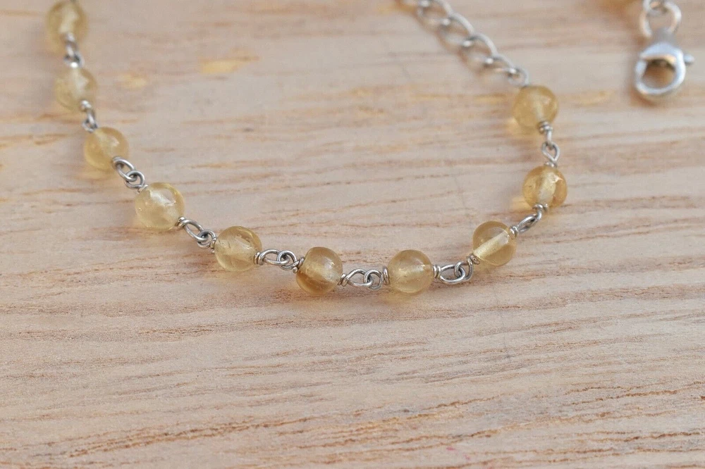 Welcome to our Shop! This bracelet is made with natural Citrine of 4mm size good quality handcrafted with sterling silver wire to give it elegant look. Bracelet has 4 cm/ 3cm adjustable chain for flexible fitting. This beautiful bracelet is made for all occasions. PERFECT GIFT FOR SPECIAL ONES! The listing uses professional photography that samples our collection. Each gemstone has its own beauty and is different in its own way, making them Unique in every parameter. YOU WILL RECEIVE THE MENTIONED STONE FROM OUR COLLECTION and will share picture before delivery . We can also customize it by choosing your choice of gemstones! When we customize jewelry for your clients we feel proud the share every details from selection of stones to getting the jewelry made , we will share you videos of the process !! KINDLY CONTACT US FOR FURTHER DETAILS! WE WOULD LIKE TO HEAR FROM YOU ! Gift packaging is available on request and is paid. Please contact for the same. Returns- We understand that it is very important to be satisfied with the Purchase you make. So for returns and exchange we request you to contact us within 3 days of delivery . Also it would be great if you could record while unpacking the parcel for better transparency ! the returns or exchange needs to be sent back and delivered within 7 working days. Return shipping is paid by the Buyer. For any queries Please feel free to message us. Normally we respond in maximum 24 hours. also visit our social media page - AGEEZA__ to get in touch with us !! Thank you