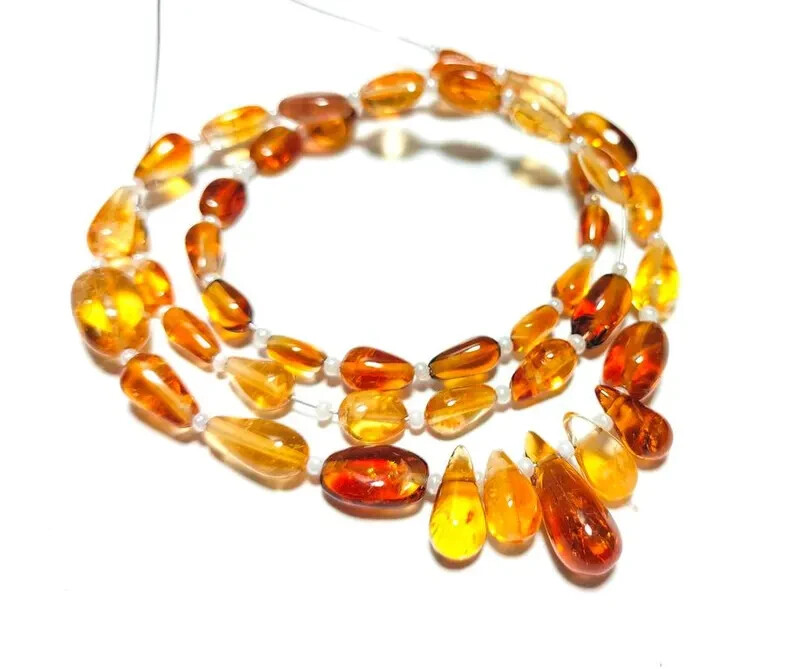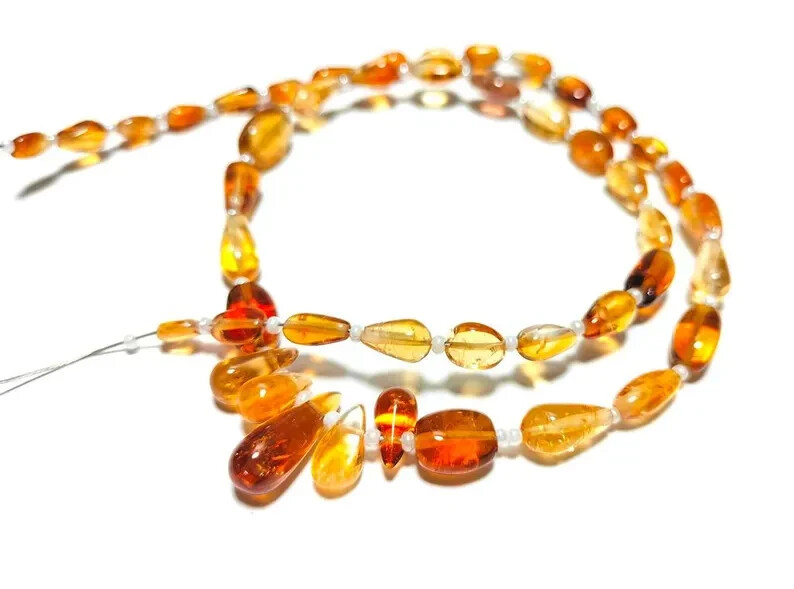 This is a 16" strand of natural Citrine beads in smooth teardrop and oval shapes, ranging in size from 4-15mm. The beads are handcrafted and have a glossy finish, making them ideal for jewelry making. The gemstones are a beautiful blue color, perfect for creating unique and eye-catching jewelry pieces. Quick Details: Material: Natural citrine gemstones Finish: Smooth teardrop and oval shapes Bead Size: 4 to 15 mm Strand Length: 16 inches Quantity: 1 strand