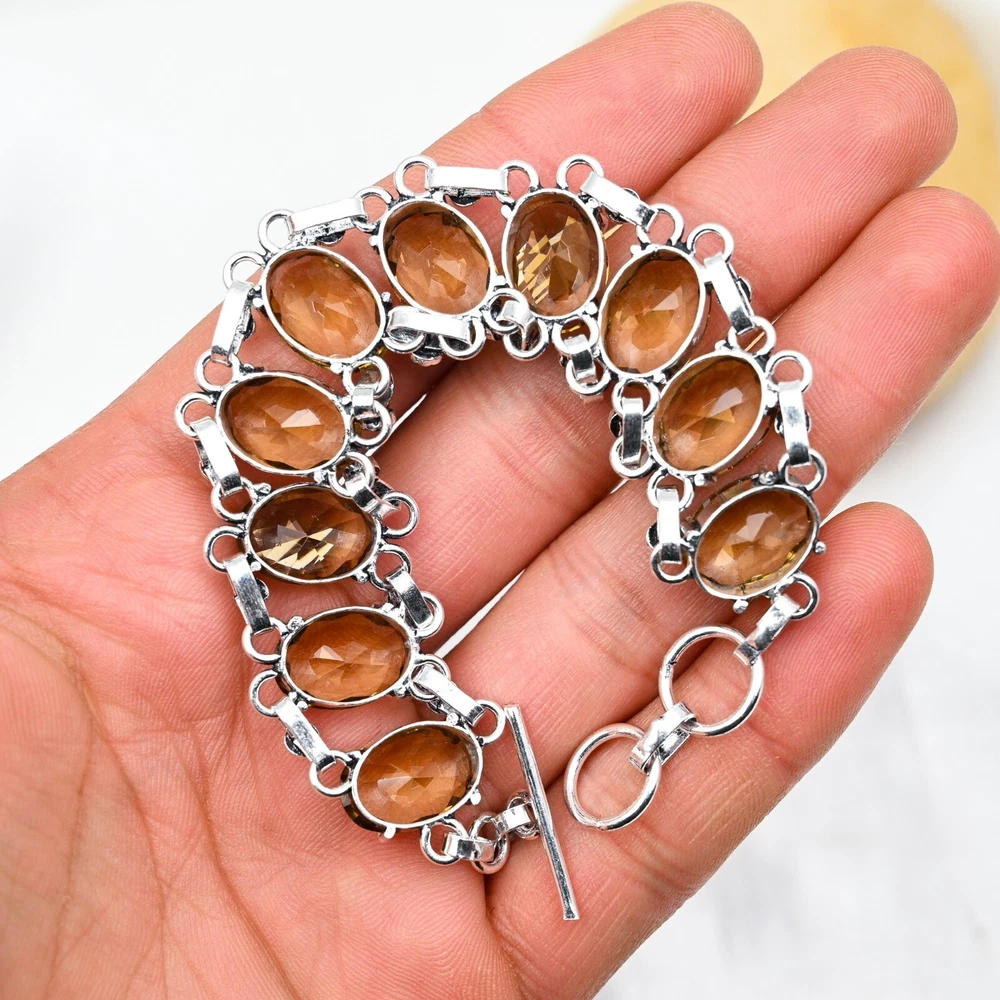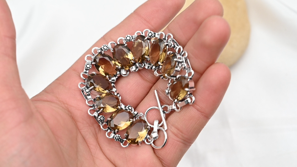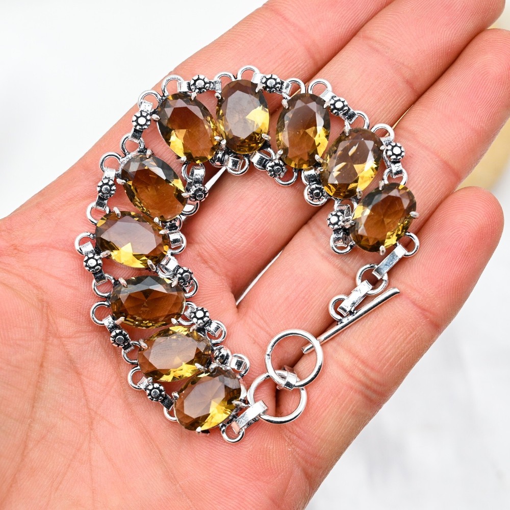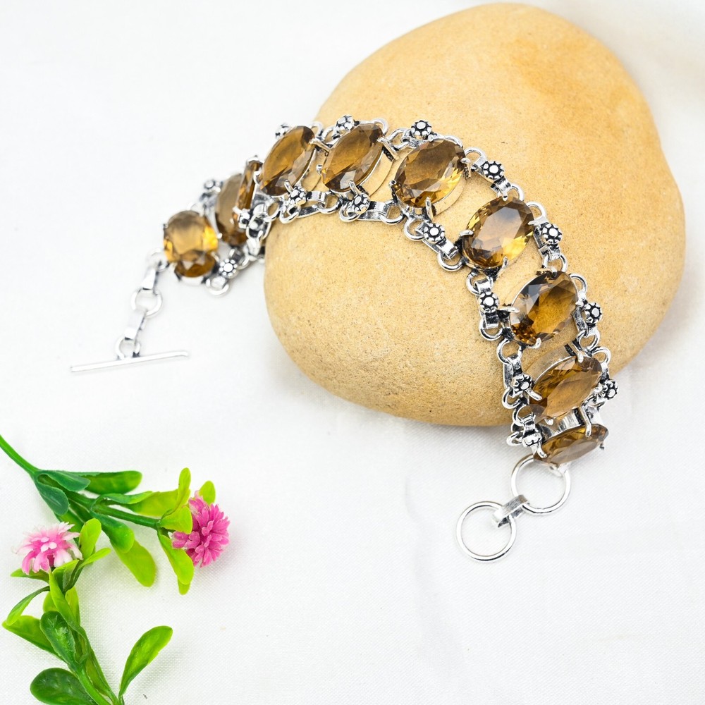 Features:AdjustableMain Stone Depth:N/AMetal:SilverMetal Purity:925Total Carat Weight:10 carat and aboveClosure:ToggleDiamond Clarity Grade:N/AMain Stone Shape:OvalBrand:HandmadeCountry/Region of Manufacture:IndiaNumber of Diamonds:N/AMain Stone Width:N/AShape:Same As PictureOccasion:Anniversary, Birthday, Christmas, Engagement, Mother's Day, Valentine's Day, WeddingColor:SilverSetting Style:BezelColored Diamond Intensity:N/ACollection:HandmadeCertification:N/ACut Grade:ExcellentMain Stone Creation:NaturalMain Stone Treatment:Not EnhancedMain Stone Length:N/ACharm Type:Same As PictureBase Metal:Sterling SilverCountry of Origin:IndiaMain Stone Color:YellowDiamond Color Grade:N/AChain Type:N/ANumber of Gemstones:10Secondary Stone:CitrineMain Stone:CitrineStyle:ChainType:BraceletItem Length:8 inches with Adjustable ChainMaterial:GemstoneTheme:Beauty, Bohemian, Ethnic, Halloween, Love