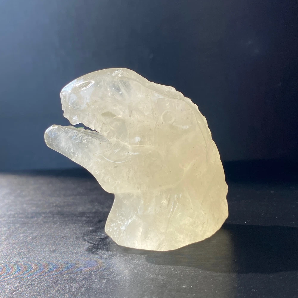 This stunning hand-carved citrine quartz dinosaur skull is absolutely mesmerizing! The natural golden hues and intricate details make it a unique decorative piece or a powerful healing crystal. It arrived well-packaged and looks even better in person—definitely worth adding to any crystal collection. The seller’s shipping was fast, and their customer service seems reliable. Love the energy it brings to my space!