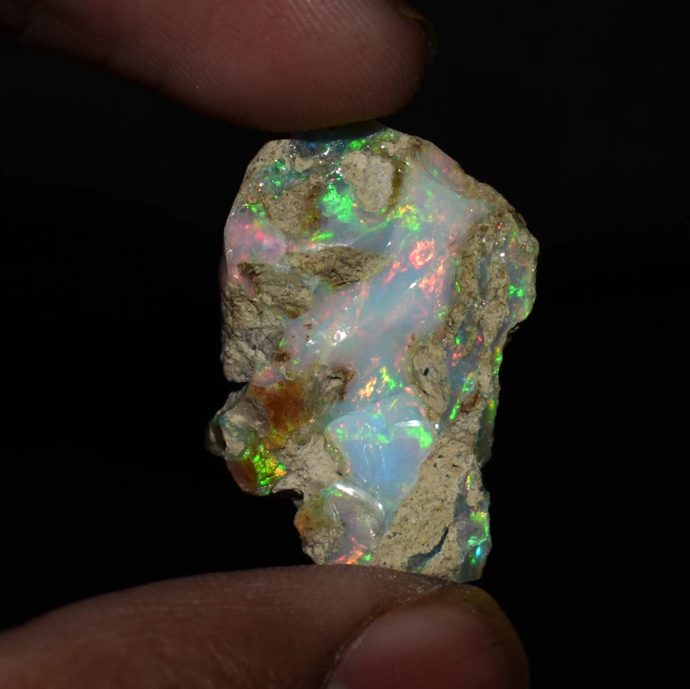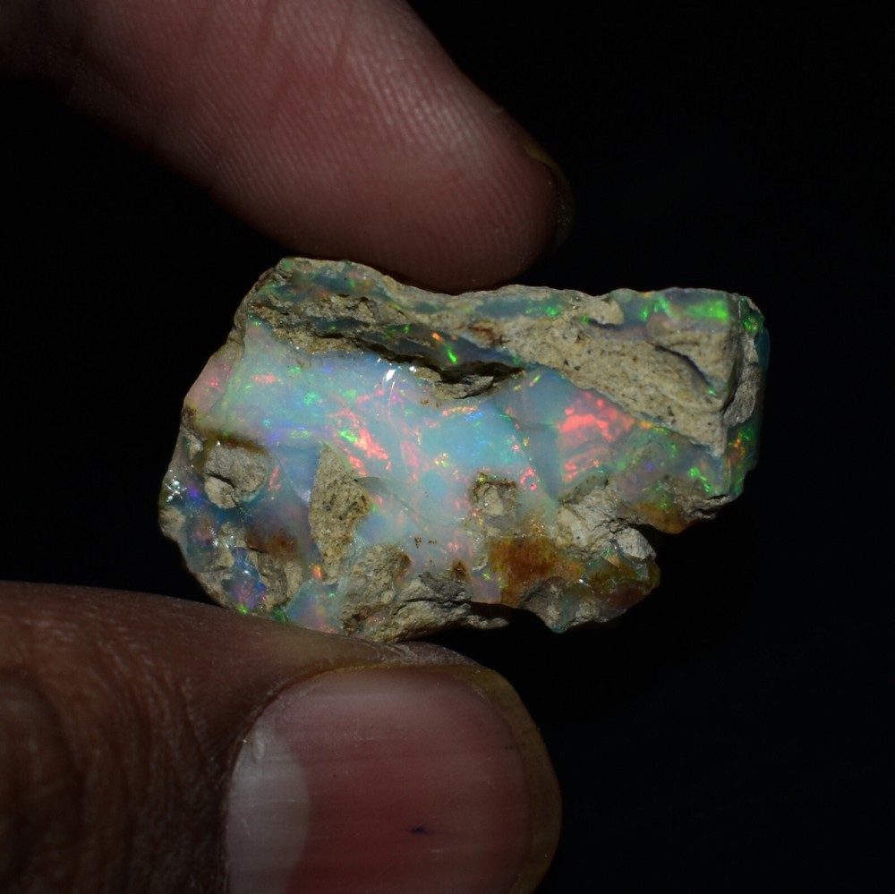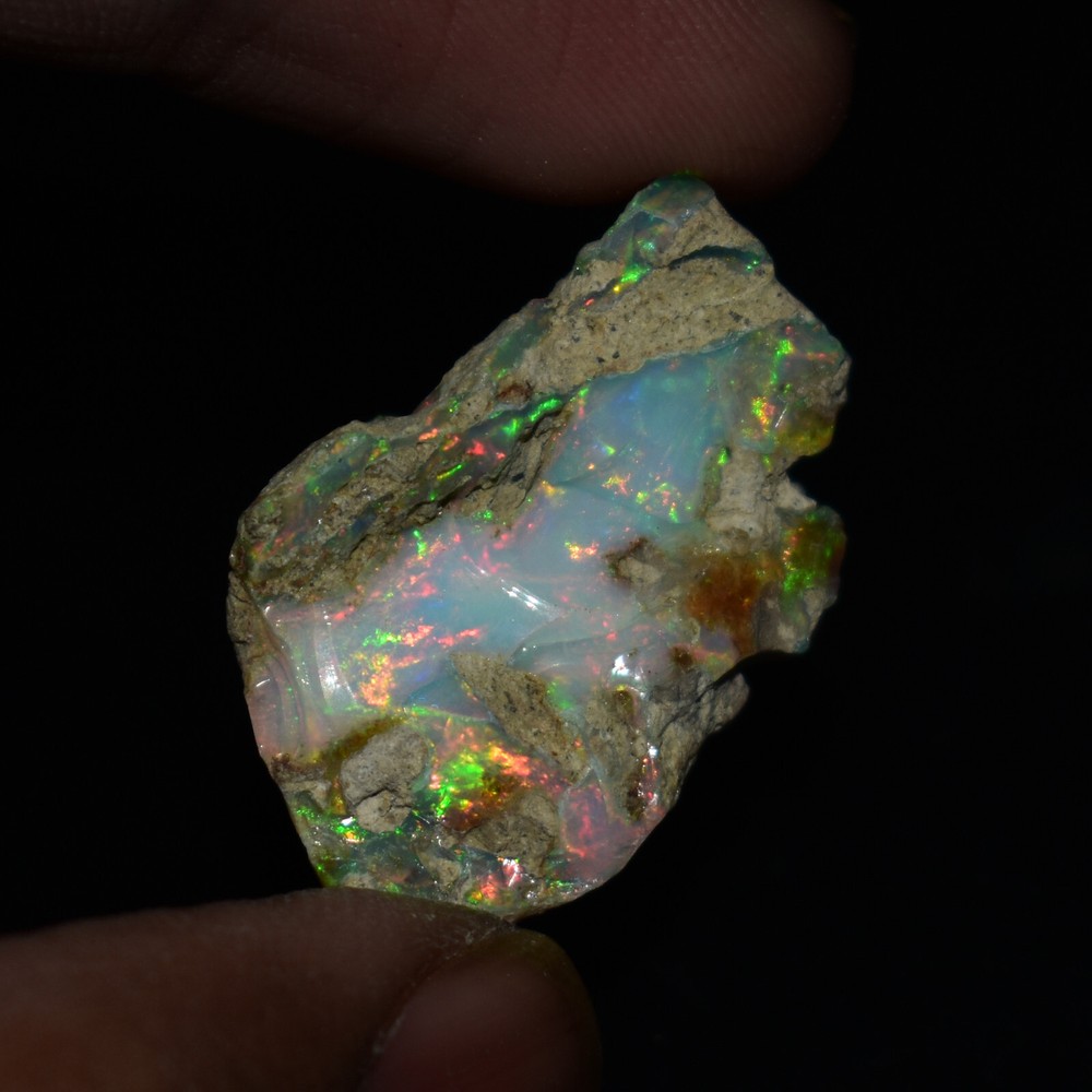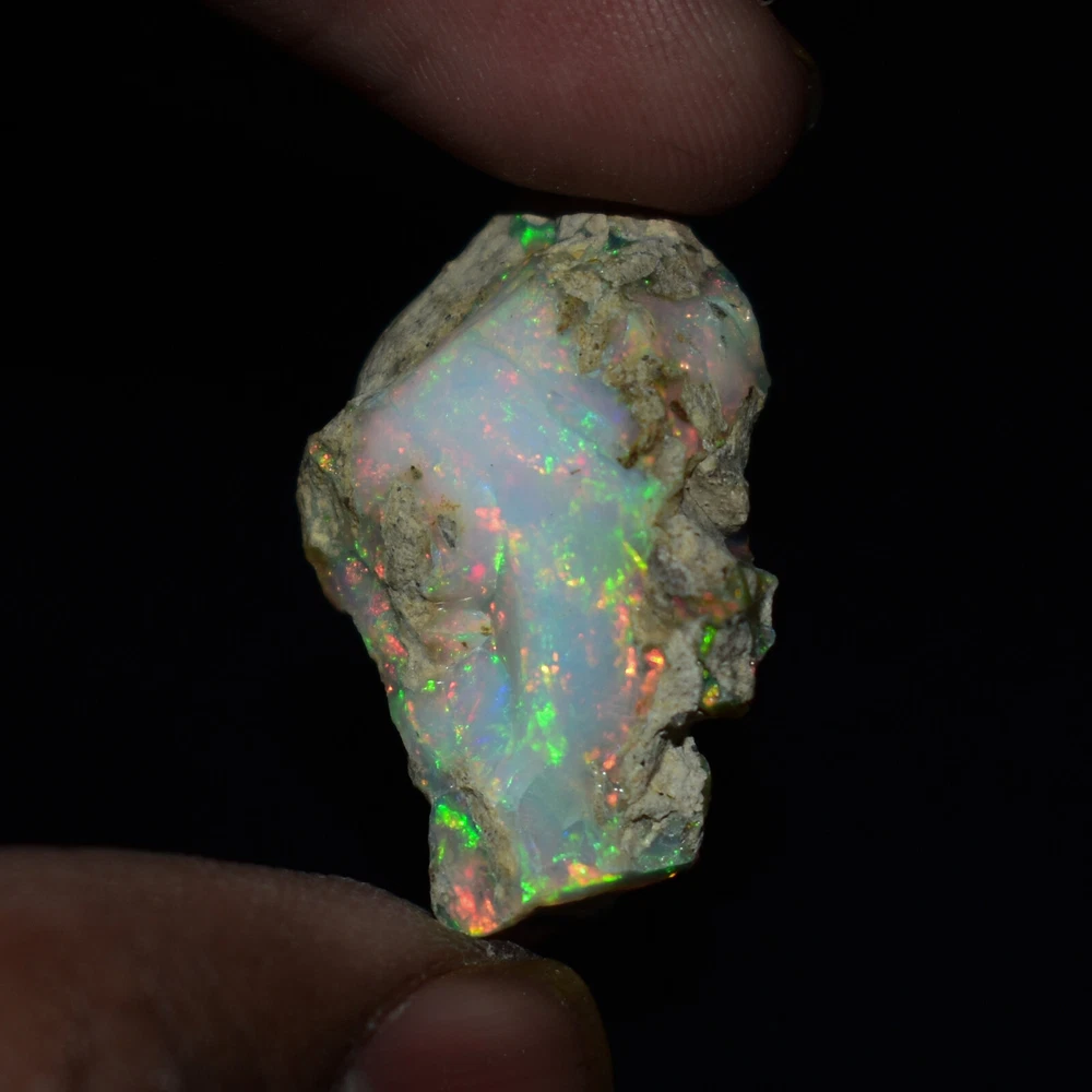 Mountain Gems USA Genuine Gemstones, Guaranteed Authenticity Discover the Beauty of Ethiopian Opal Rough Jewelry Grade Experience the raw, unpolished beauty of Ethiopian opal, a gemstone renowned for its vibrant colors and unique play of light. This rough opal specimen offers a direct connection to the Earth's natural wonders. Key Features: * Type: Ethiopia Opal Jewelry Grade Rough * Weight: 19.65 Carats * Size: 26X17 MM * Origin: Ethiopia, a renowned source of high-quality opal * Condition: Rough, unpolished specimen * Color: Multi Color with Fire Flashes About Ethiopian Opal: Ethiopian opal is prized for its vibrant colors, including blues, greens, yellows, oranges, and reds. It often exhibits a stunning play of light known as "opalescence." This phenomenon is caused by the diffraction of light within the stone's microscopic silica spheres. Note: * The colors and patterns in this specimen may vary slightly due to the natural variation of opal. * This is a rough specimen and may require further cutting or polishing to reveal its full potential. Shipping: * Free International Standard Shipping: Enjoy free standard shipping across the Globe. * International Shipping: Free Returns: * Free 30-Day Returns: Return the item within 30 days for a full refund, no questions asked. Payment: * Accepted Payment Methods: PayPal, credit cards, debit cards, Venmo, etc Additional Information: * Certificate of Authenticity: 20$ Extra for Cetificates * Custom Orders: We offer custom cutting or polishing services, drilling and whatever you want. By purchasing this Ethiopian opal specimen rough, you're acquiring a unique piece of nature's artistry.