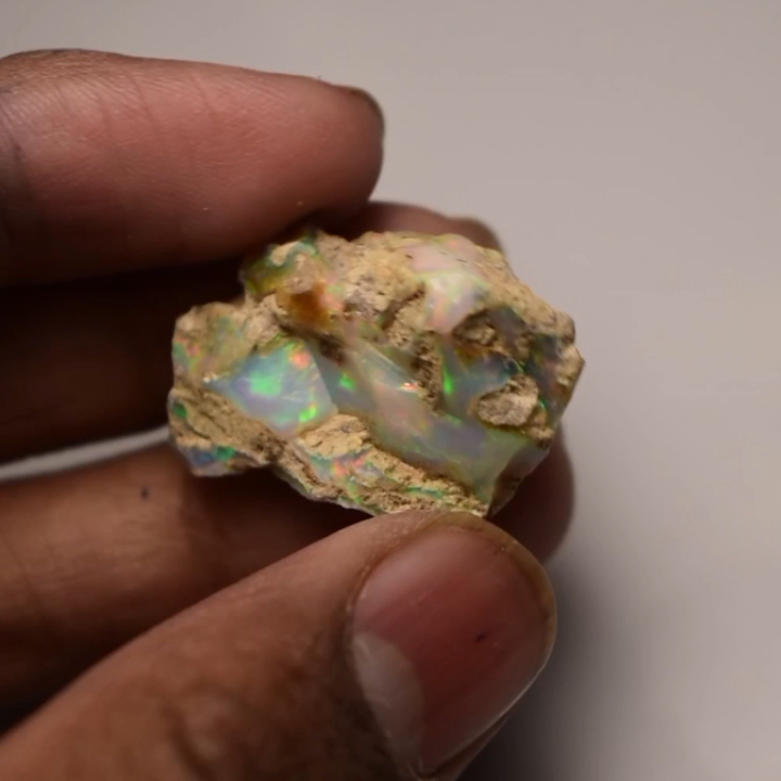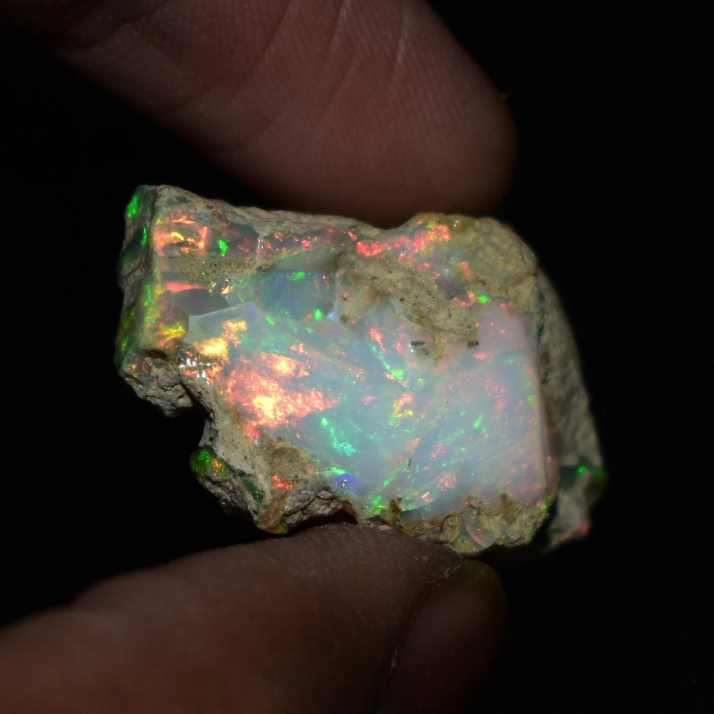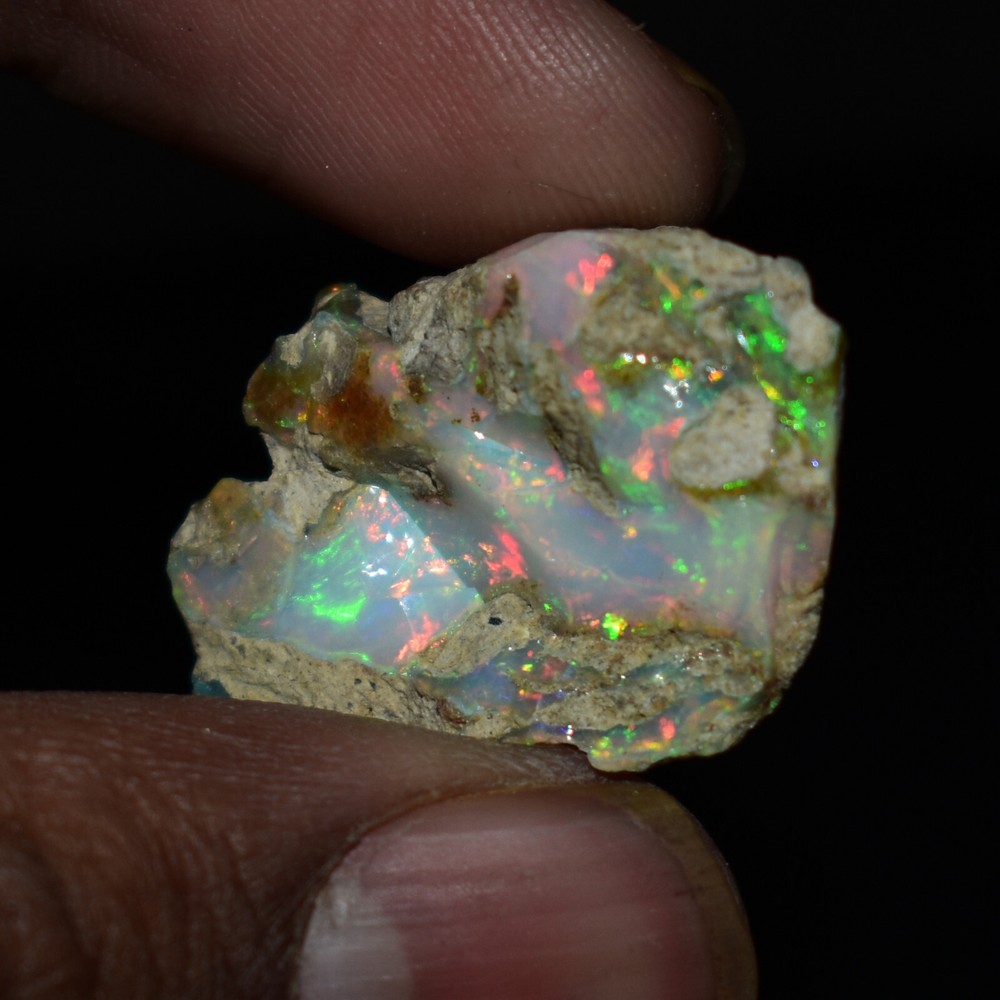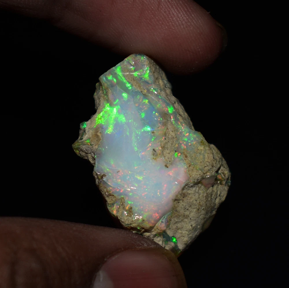 Mountain Gems USA Genuine Gemstones, Guaranteed Authenticity Discover the Beauty of Ethiopian Opal Rough Jewelry Grade Experience the raw, unpolished beauty of Ethiopian opal, a gemstone renowned for its vibrant colors and unique play of light. This rough opal specimen offers a direct connection to the Earth's natural wonders. Key Features: * Type: Ethiopia Opal Jewelry Grade Rough * Weight: 19.65 Carats * Size: 26X17 MM * Origin: Ethiopia, a renowned source of high-quality opal * Condition: Rough, unpolished specimen * Color: Multi Color with Fire Flashes About Ethiopian Opal: Ethiopian opal is prized for its vibrant colors, including blues, greens, yellows, oranges, and reds. It often exhibits a stunning play of light known as "opalescence." This phenomenon is caused by the diffraction of light within the stone's microscopic silica spheres. Note: * The colors and patterns in this specimen may vary slightly due to the natural variation of opal. * This is a rough specimen and may require further cutting or polishing to reveal its full potential. Shipping: * Free International Standard Shipping: Enjoy free standard shipping across the Globe. * International Shipping: Free Returns: * Free 30-Day Returns: Return the item within 30 days for a full refund, no questions asked. Payment: * Accepted Payment Methods: PayPal, credit cards, debit cards, Venmo, etc Additional Information: * Certificate of Authenticity: 20$ Extra for Cetificates * Custom Orders: We offer custom cutting or polishing services, drilling and whatever you want. By purchasing this Ethiopian opal specimen rough, you're acquiring a unique piece of nature's artistry.