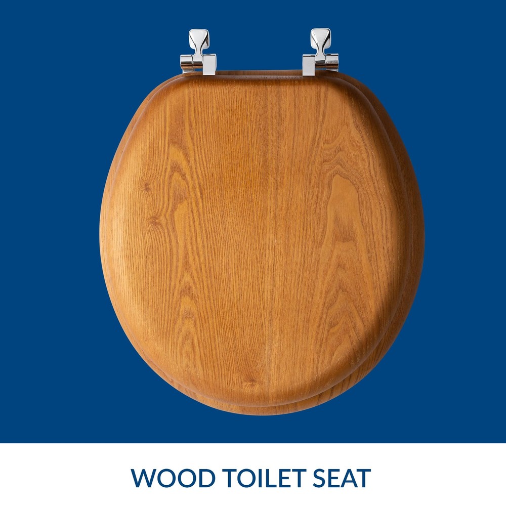 From the Manufacturer – For over 60 years, has been bringing quality products with innovation and style to homes throughout North America. toilet seats provide a wide variety of designs to easily integrate into any bathroom. The needs of customers are at the forefront of design with unmatched features and benefits that make everyday lives easier. The brand is part of Bemis Manufacturing Company, the world’s largest manufacturer of toilet seats. Founded in 1901, and in the fourth generation of family ownership, Bemis has grown from a maker of furniture and wooden wagons to an international enterprise with manufacturing and warehousing facilities worldwide. In addition to manufacturing toilet seats, Bemis is of North America’s top non-automotive producers of contract plastic injection-molded components. With a continued commitment to the worldwide community, Bemis Manufacturing Company strives to set the standard for ecological responsibility, conservation and preservation. Product Description This Natural Reflections Veneer toilet seat bring natural beauty to your bathroom without splitting or cracking. The classic non-tarnish chromemetal hinges are stylish and long-lasting. Fits all manufacturers' round bowls in the US and Canada. NOTE: Colors on a or printed from a can vary drastically from the actual color of the toilet seat due to monitor and printer settings. NOTE: Colors on a or printed from a can vary drastically from the actual color of the toilet seat due to monitor and printer settings. The colors on this page are for approximate visual use and should not be used to match colors exactly to a toilet bowl. WOOD FINISH: Bring natural beauty to your bath without splitting or cracking CLASSIC CHROME HINGES: Accent bath hardware finishes FITS ALL ROUND TOILETS: Including Kohler, American Standard, TOTO and many more