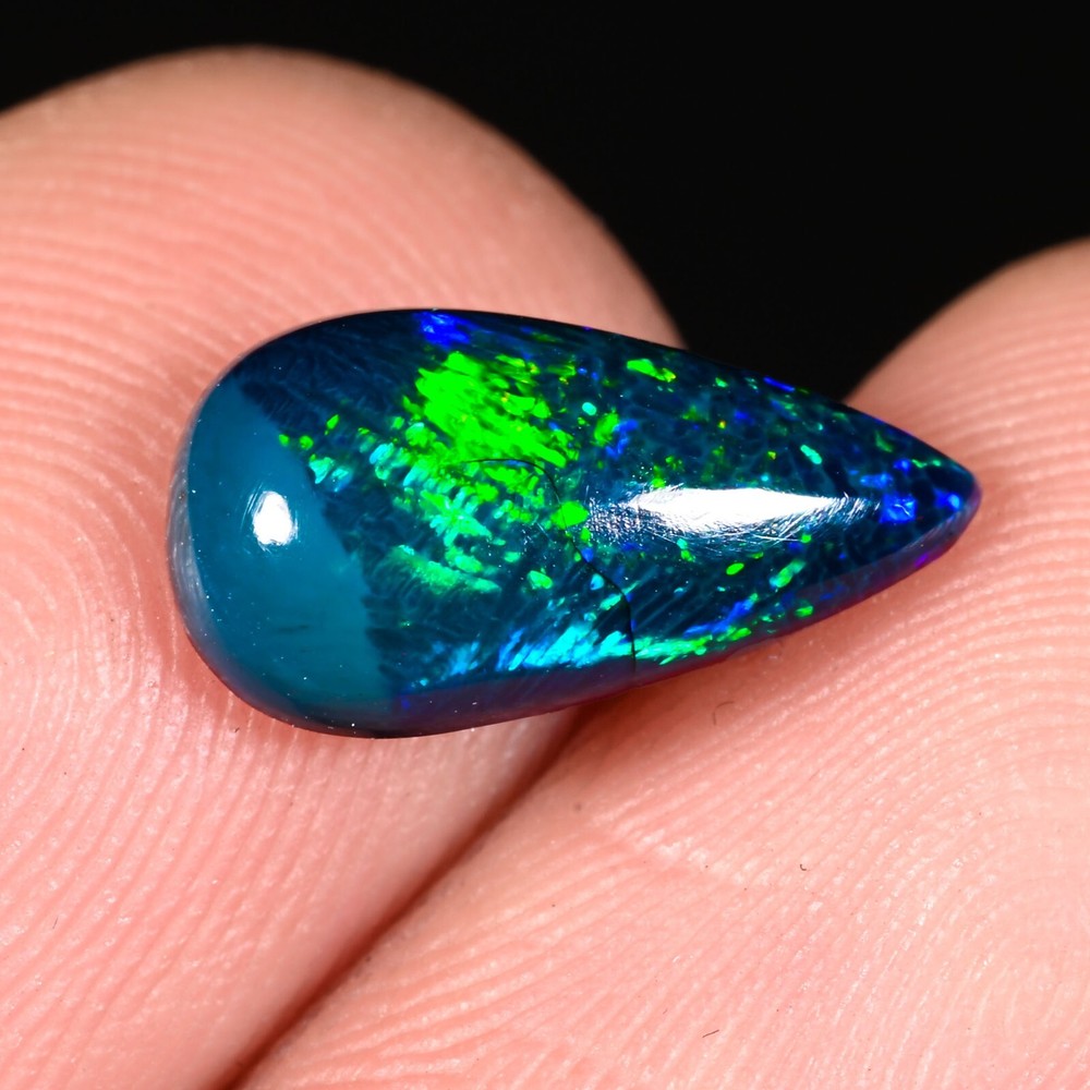 This stunning black opal cabochon is absolutely mesmerizing! The deep black base with vibrant flashes of color makes it a true showstopper. At 1.35 carats and 12x6x4mm, it's the perfect size for unique jewelry pieces. The natural treatment ensures its authenticity, and the pear shape adds an elegant touch. Highly recommended for anyone looking for a rare, eye-catching gemstone!