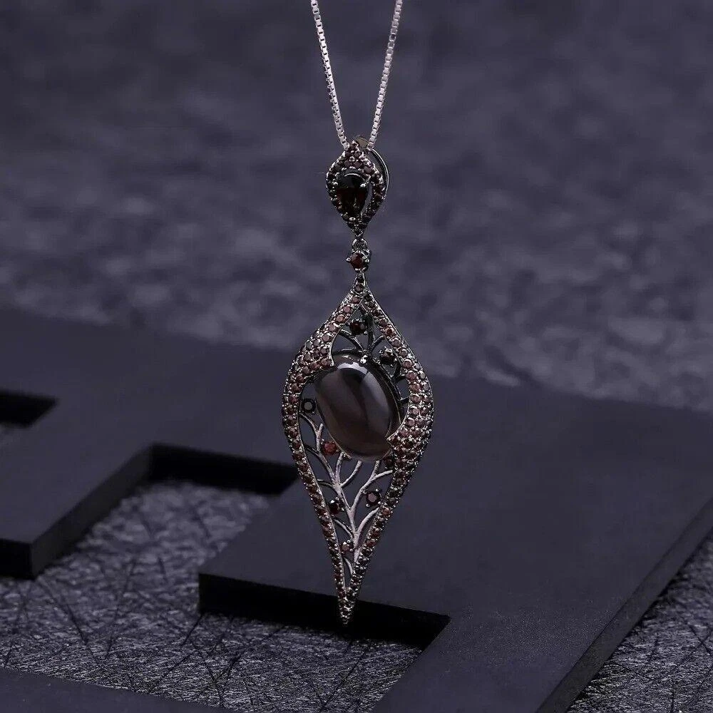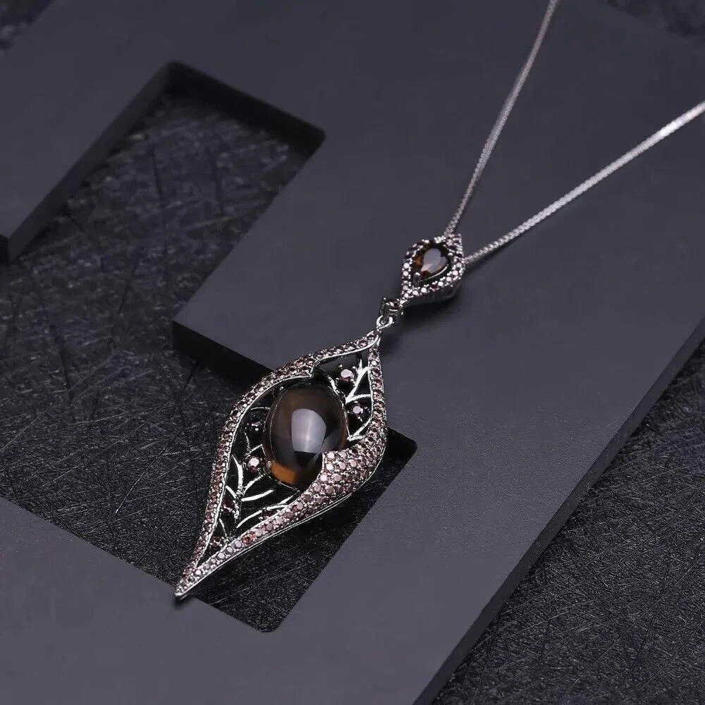 HomeNatural Smoky Quartz Solid 925 Sterling Silver Gothic Punk Pendant Necklace