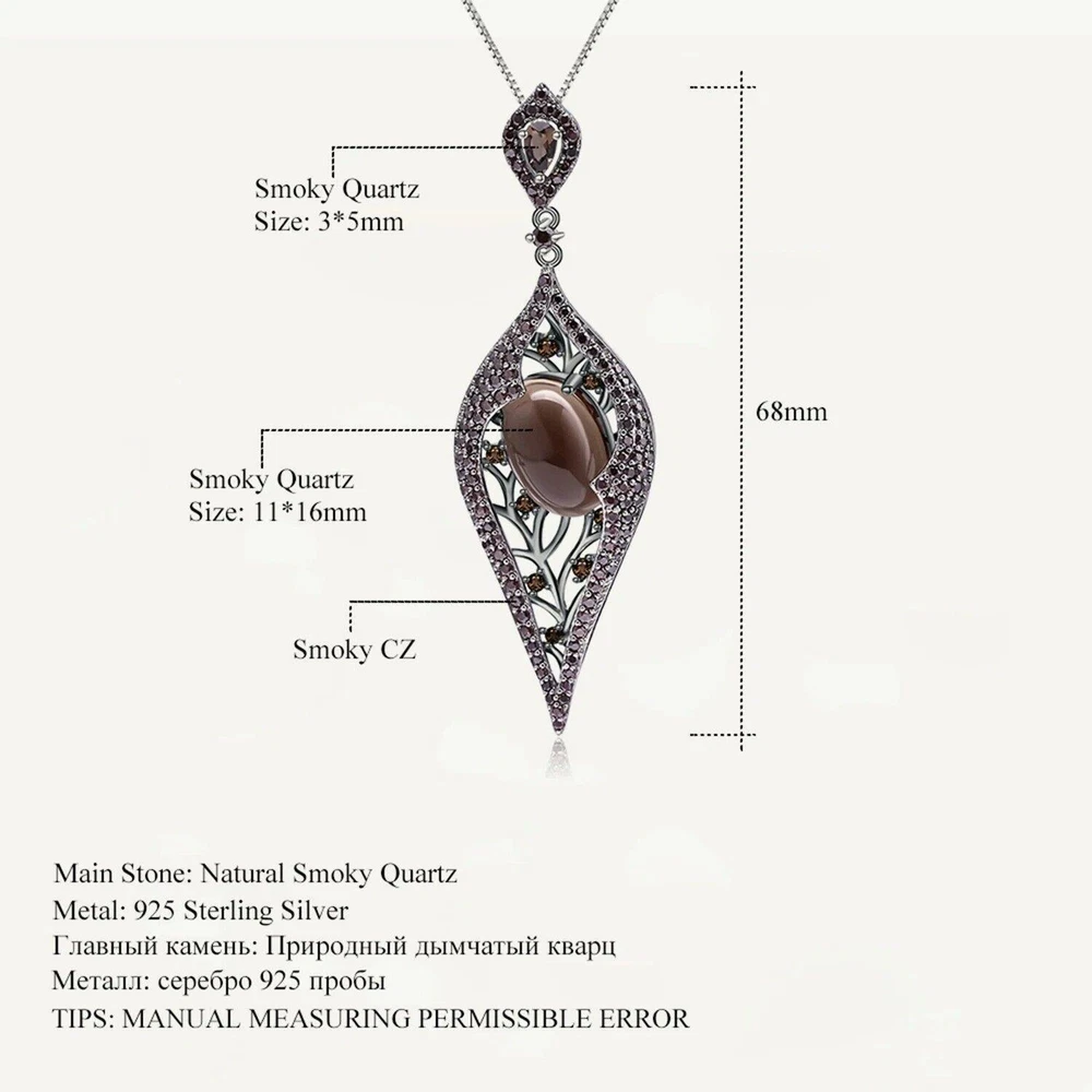 Main Stone Color:BrownMain Stone:Smoky QuartzType:NecklaceMain Stone Size:11*16mmSecondary Stone:Smoky QuartzMain Stone Treatment:HeatingPendant Shape:PlantCertification:GtcBrand:UnbrandedMetal Purity:925 Parts Per 1000Length (inches):45cmTheme:Flowers & Plants, PunkMain Stone Creation:NaturalStyle:Classic, PendantPendants Type:SolitaireChain Type:Link ChainLength:CustomizedMetal:Sterling SilverTotal Carat Weight:2.00 - 4.99Material:GemstoneBase Metal:Fine Silver, 925 Parts Per 1000