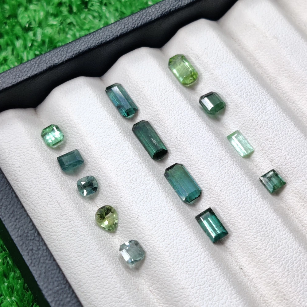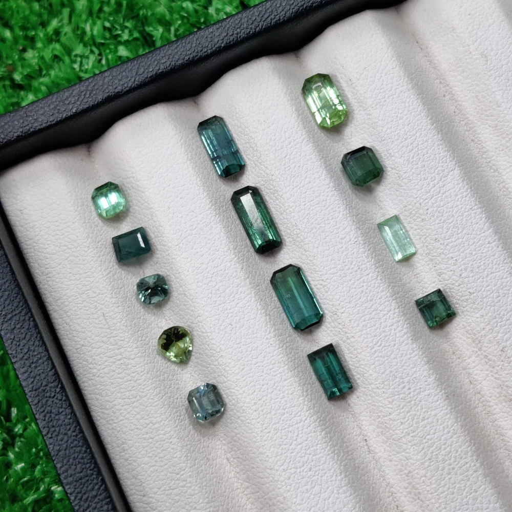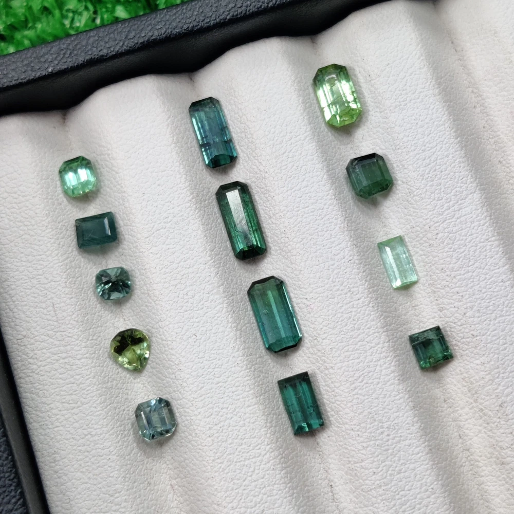 Natural Tourmaline Lot of 13 pieces, totaling 8.45 carats, with each gemstone being cut and slightly included. The gemstones are in a variety of colors as seen in the picture, originating from Afghanistan and cut in Pakistan. Suitable for making jewelry such as rings, this untreated tourmaline collection is a valuable addition for gemstone enthusiasts. Natural Tourmaline Lot 13 pcs Ring Loose Gemstone 8.45Ct Cut-Jewelry GEMSTONE TYPE: Tourmaline βοΈ WEIGHT: 8.45Carat πͺ SHAPE & CUT: A seen in picture π COLOR: A seen in picture π CLARITY : Slightly Included π§ͺ TREATMENT : None (100% Natural) π ORIGIN: Afghanistan
