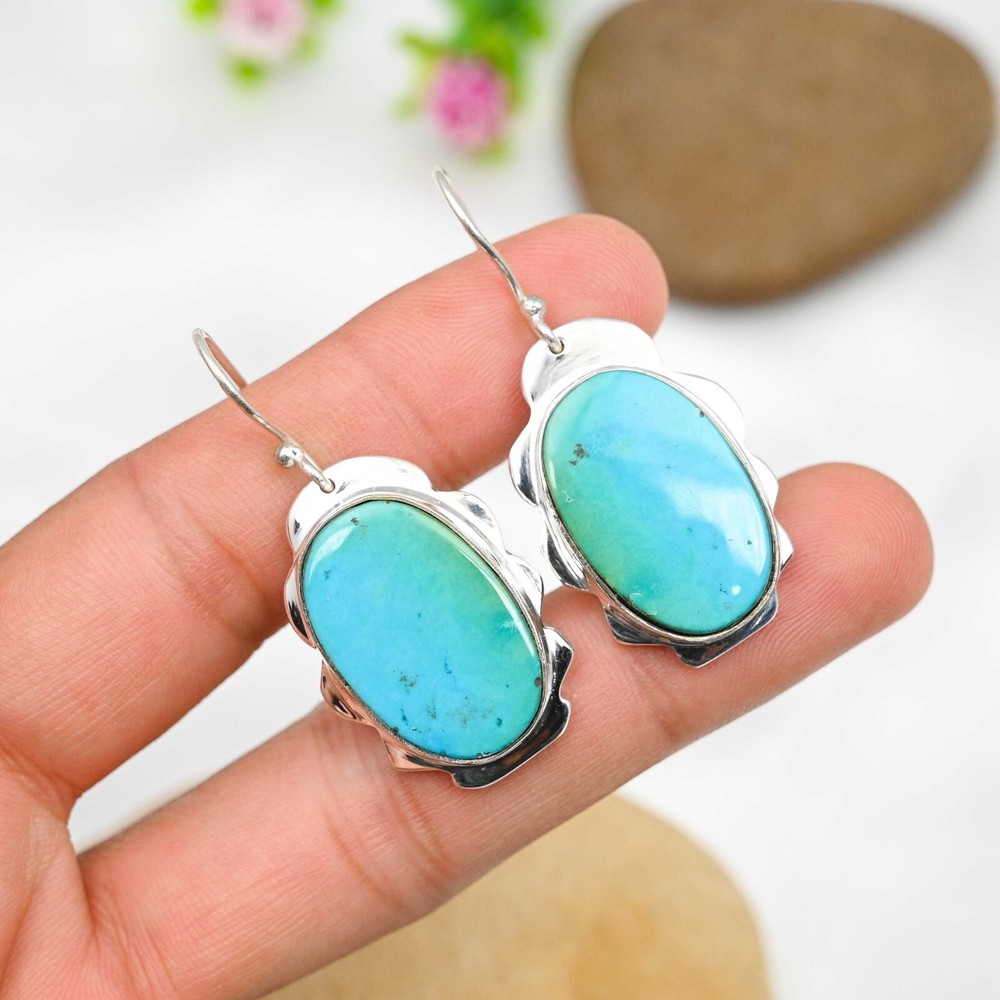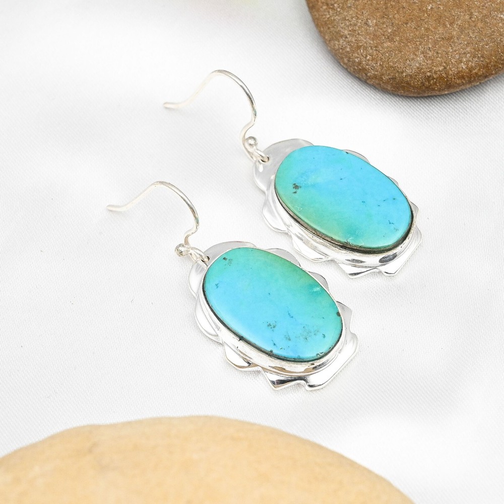 The earrings took a minute to arrive, but they were well worth it. Beautiful turquoise and shiny silver made me so happy! Perfect size too. Seller was kind and I am totally happy about everything! Thank you!