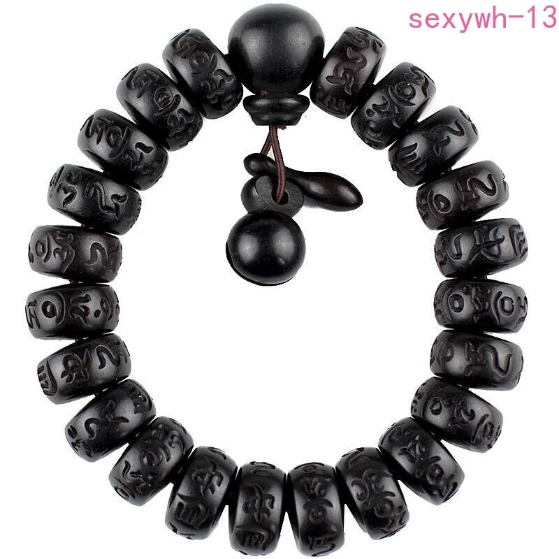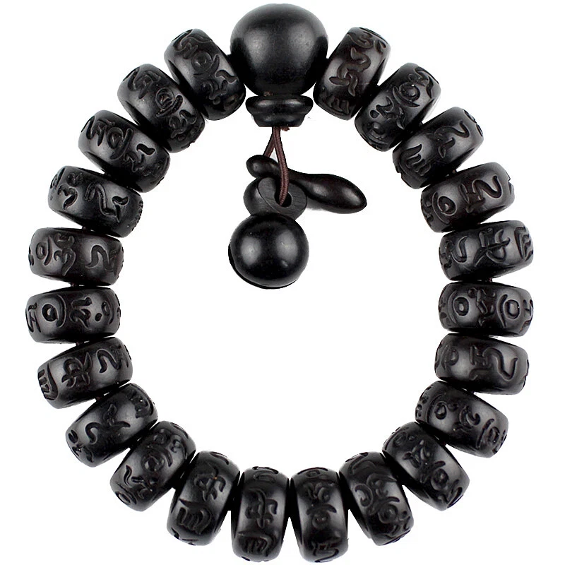 Natural Wood Tibetan Six Characters Mantra Bracelets Buddhist Lightning Yoga