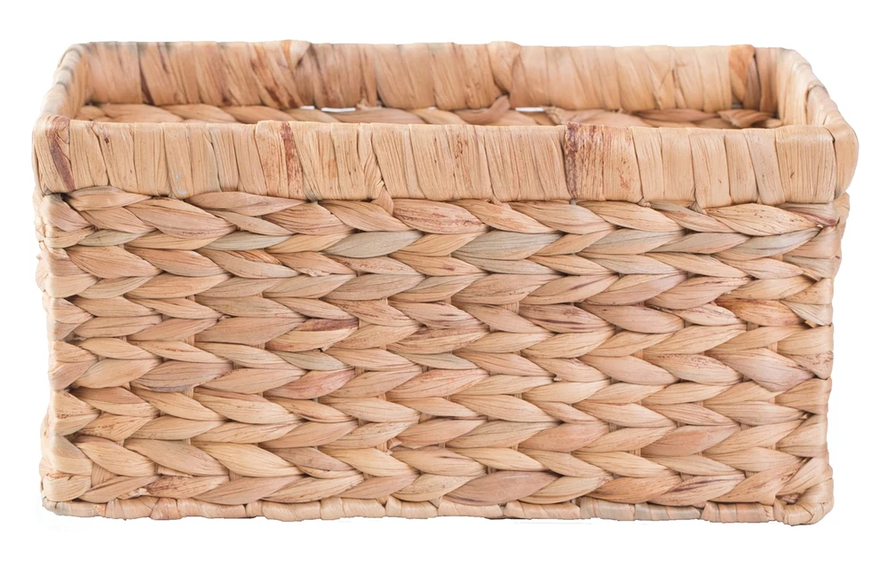 Size: 12" W x 7.5" D x 6" H Composed out of durable water hyacinth material Fits in perfectly with any lodge, cabin, or rustic decor theme Multi use storage options Cutout handles for easy carrying