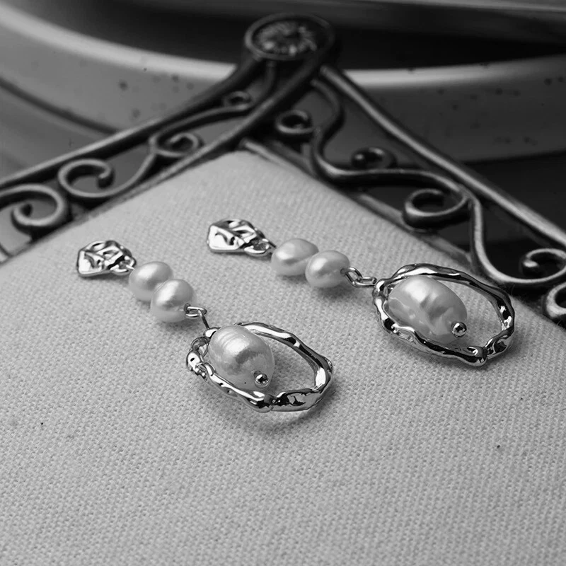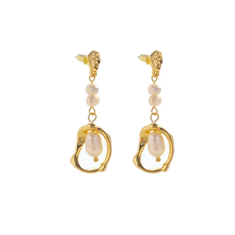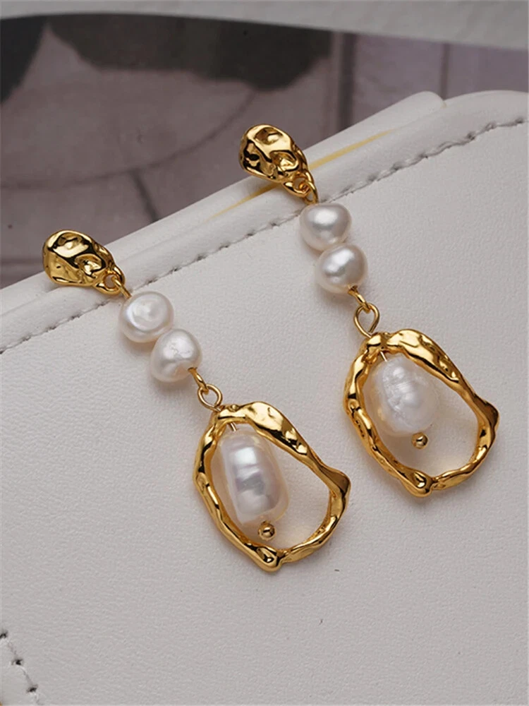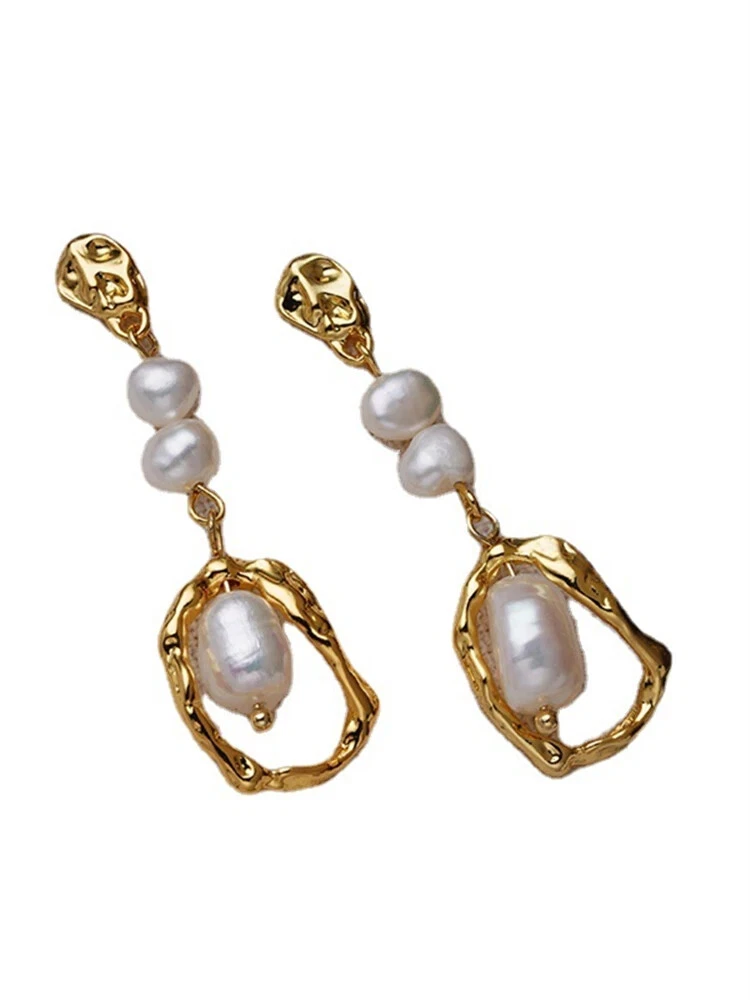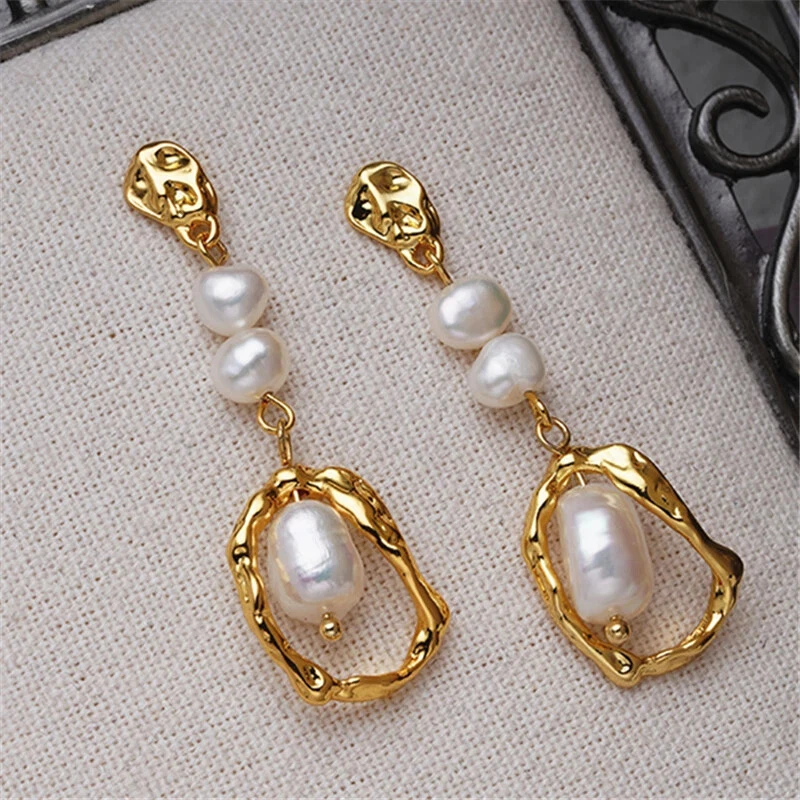 Project: Natural pearl pendant female earrings temperament Europe and the United States light luxury long studs retro ear accessories wholesale Material: Zinc alloy +18k gold plating Size: as shown Gender: Female/female/lady/girl Shape: geometry Color: As shown Occasion: Party/office/leisure/gift