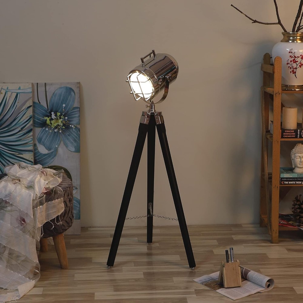 DESCRIPTION Material Used : Wood, Steel, Aluminum & Glass Color : Chrome & Black Size : Head Size:9" X 8" Inches, Total Height :40" inches Weight : 4.8 kg Approx. Usage : Decoration, Floor Search Light, corner lamp, corner corner light Packing: Packed in a package, Corrugated Export Packaging Wiring : In accordance with national standards (AU, EU, UK, US) You can set it in any place you need, such as bedroom, living room, reading corner, apartment, music room, media room, painting room, office and so on. SOLD BY MEDIEVAL REPLICAS