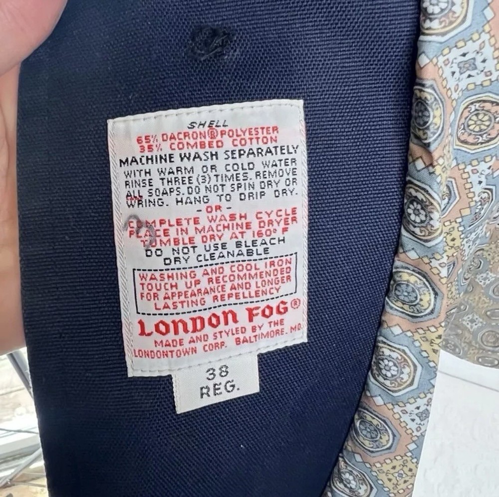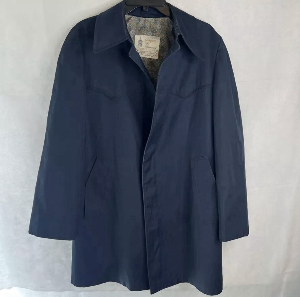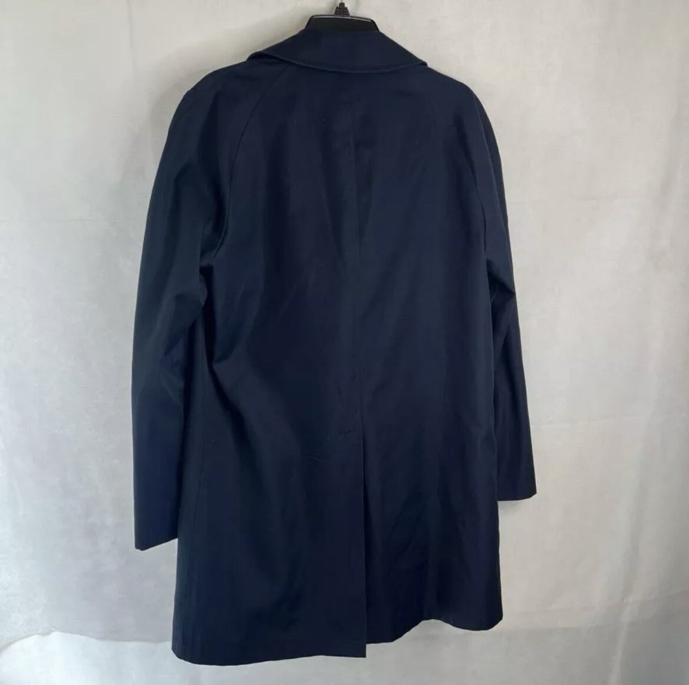 The coat is made of a cotton blend material that is durable, breathable and water-resistant, making it perfect for any weather and for use either as an overcoat or on its own. Featuring a collared neckline and button closure, this coat has a solid, classic pattern. The coat has been freshly cleaned and pressed. Please note that two of the four buttons are currently missing. This is not apparent when wearing the coat, but the new owner may wish to add new buttons.