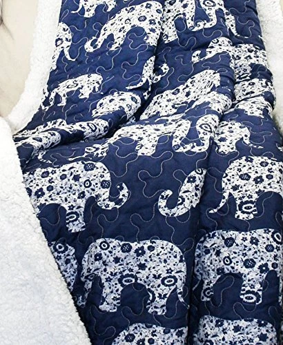 Elephants symbolize strength, honor, stability and much more. These Sherpa throws will be the eye catcher in any room, feeling Oh so soft, elephant designs and Sherpa reverse all while adding the finishing touch to any room. Look for the elephant Parade collection to create the finished look in your home. Soft, 100% microfiber fabric reversible Sherpa throw measures 60” x 50” and contains a cotton/poly blend filling. A perfect fuzzy elephant blanket for the living room, foot of the bed, nursery or as a gift. Decorative, white elephant design set against a gray background for a beautiful, functional throw. Throw is easy to care for and safe to machine wash cold and tumble dry low. Do not iron.