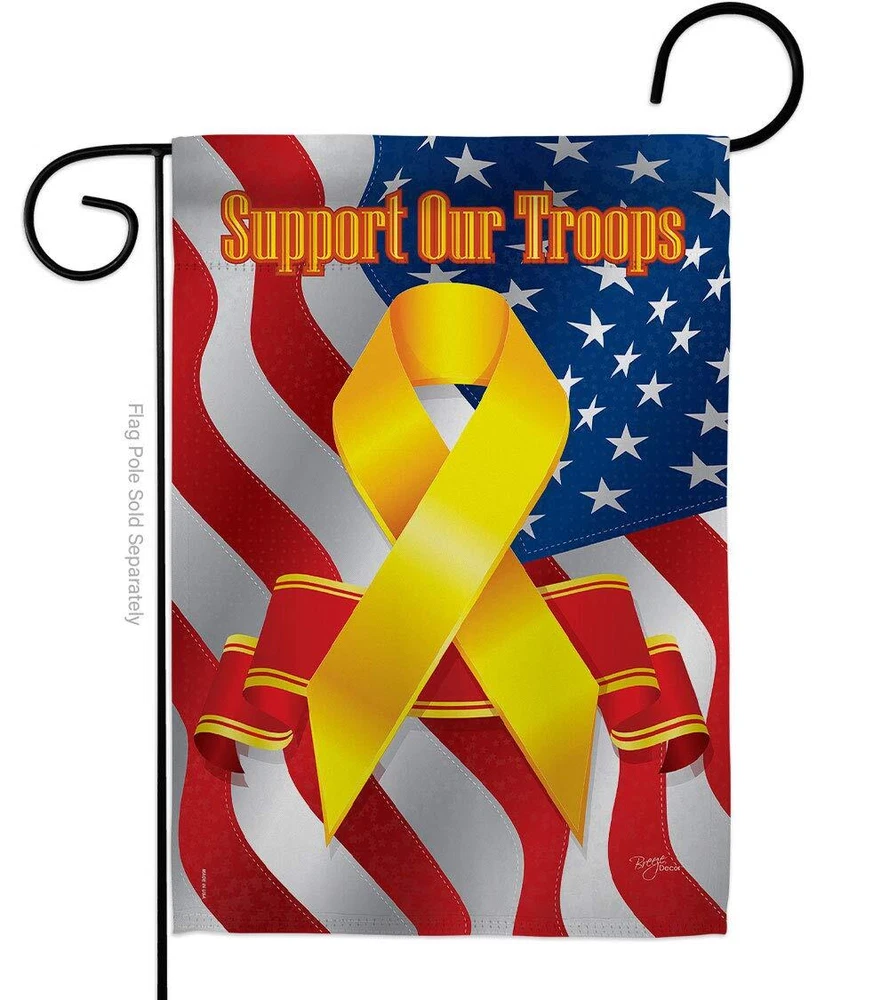 PROUDLY Made In USA - Package And Product Designed In California PURCHASE WITH CONFIDENCE - From 's US Authorized Resellers MADE OF DURABLE - 100% Thick Polyester Fabric construction helps resist the wear and tear from frequent use TEXT READABLE BOTH SIDES - Garden Flags Pack Double-Sided Print DURABLE FLAG - Double stitching panels on multiple rows and high quality Sleeve to provide lasting strength VIBRANT COLORS - With UV-Resistant Maintains Its Colors All Season Long FEATURES - Sleeve Hanger fits standard Banner/Flagpole, Bracket, Arbors or stand, SOLD Separately