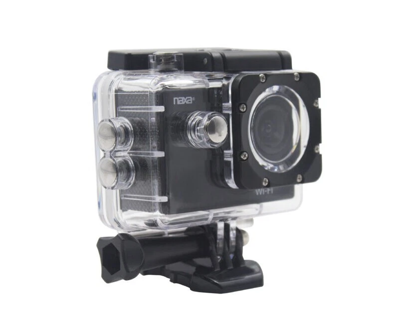 Capture your adventures with the Naxa Waterproof HD Action Camera NDC-409. This high-quality camera is designed to withstand water pressure up to 30 meters, making it perfect for underwater photography and videography. With its snap-on mount type, LCD display, and adjustable features, you can easily capture the perfect shot. The camera is equipped with a rechargeable battery that provides up to 1.5 hours of battery life, ensuring that you don't miss a moment. The micro USB and Wi-Fi connectivity options make it easy to transfer your footage to your computer or other devices. The Naxa Waterproof HD Action Camera NDC-409 is the perfect accessory for any adventure, whether you're a professional photographer or just looking to capture some fun moments. Includes: Waterproof housing Handle bar/ pole mount Helmet mount Mount 1, Mount 2, & Mount 3 Clip 1 Straps USB cable Battery