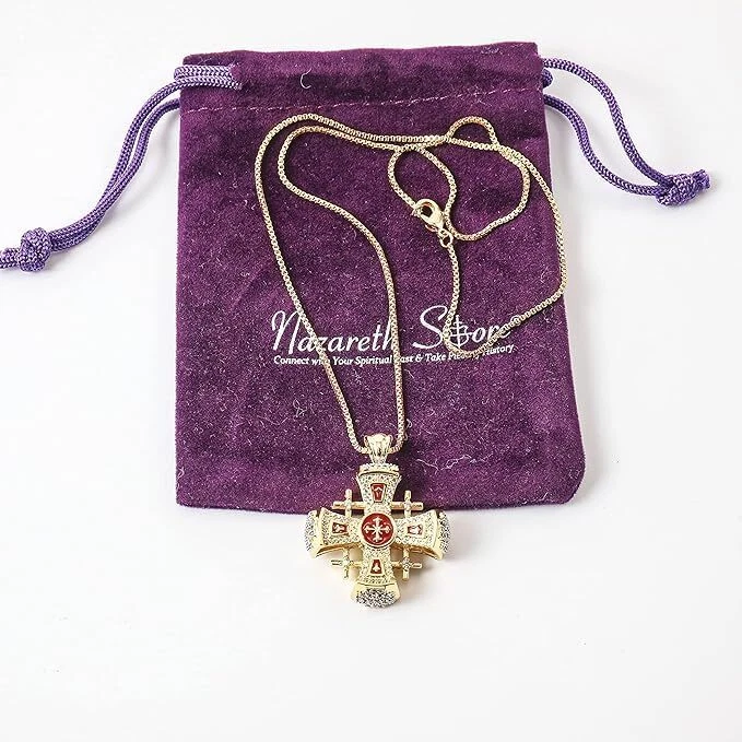 Nazareth Store Crusaders Jerusalem Cross Pendant Necklace Gold Plating 18k Enamel Crystallized Stones 1.3" (Red) Crusaders Jerusalem Cross 14K gold plated on a silver base long-lasting Cross with sparky rhinestones covered in red enamel. Beautiful elegant Cross pendant, lead-free, nickel free, hypoallergenic, and exceptionally durable, built to last and prevent tarnish and corrosion. Durable and built to last this Jerusalem cross pendant is made of the highest grade of gold plating that looks and feels heavenly and assures longevity. Size: (H X W) : Pendant: 3.2 cm X 2.6 cm / 1.3" x 1" Weight: 7 gr / 0.24 o.z. Spiritual amulet and a great reminder of Jerusalem, this religious pendant is a wonderful gift for any occasion, birthday, Confirmation, First Communion, Baptism, and the perfect gift for friends or family members. Crusaders Jerusalem Cross 14K gold plated on a silver base long-lasting Cross with sparky rhinestones covered in red enamel. Beautiful elegant Cross pendant, lead-free, nickel free, hypoallergenic, and exceptionally durable, built to last and prevent tarnish and corrosion. Durable and built to last this Jerusalem cross pendant is made of the highest grade of gold plating that looks and feels heavenly and assures longevity. Size: (H X W) : Pendant: 3.2 cm X 2.6 cm / 1.3" x 1" Weight: 7 gr / 0.24 o.z. Spiritual amulet and a great reminder of Jerusalem, this religious pendant is a wonderful gift for any occasion, birthday, Confirmation, First Communion, Baptism, and the perfect gift for friends or family members. Shipping We offer FREE shipping on all orders! We ship within Three business days of payment, usually sooner. We use a selection of shipping services such as UPS, FedEx, USPS etc. We only ship to the lower 48 states, no APO/FPO addresses or PO Boxes allowed. Local pickups and combined shipping options are not provided at this time. Return You can return a product for up to 30 days from the date you purchased it. Any product you return must be in the same condition you received it and in the original packaging. Please keep the receipt. Feedback Customer satisfaction is very important to us. If you have any problem with your order, please contact us and we will do our best to make you satisfied. Contact Us If you have any queries, please contact us via ebay. We usually respond within 24 hours on weekdays. Please visit our eBay store to check out other items for sale! Thank you for shopping at our store.