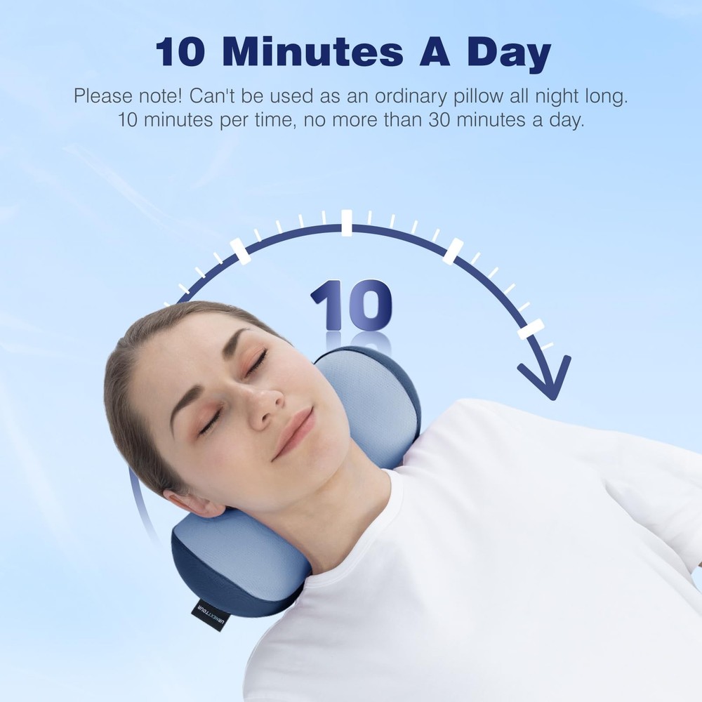 Ergonomically designed cervical traction pillow Neck Stretch Pillow:When you lie on it, it provides vertical and horizontal support with a curved stretch to complete the neck traction treatment. Upward stretching: It targets the tender areas of the neck and low head, providing traction and releasing pressure on the body. Relaxes muscles and relieves chronic neck pain. Lateral Stretch:By massaging the nodes you can relax the muscles on both sides of the spine, just like massaging the cervical spine with acupressure. Curve stretching:Has an elasticity that causes deformation and support when lying down, thus stretching the cervical spine. Just 10 minutes of pain relief:The neck pillow is ergonomically designed to conform to the structure of the cervical spine, providing proper vertical and horizontal support and curvilinear stretch traction for the neck. Max comfortable memory foam neck traction pillow: This cervical neck pillow is wrapped in silky, breathable ice silk fabric to keep you cool and dry. The removable, washable pillowcase ensures easy maintenance, while the odorless, high-density memory foam provides unmatched softness and resilience. This pillow provides quick relaxation and relief from neck discomfort. Do you suffer from neck pain due to prolonged head bowing, sedentary behavior or poor posture? cervical traction device offers you a simple and effective solution. This durable cervical traction device helps to relieve neck and shoulder pain and stress, and soothe sore muscles. Versatile and portable cervical neck pillow: Designed with portability in mind, the neck pillow is small, collapsible and lightweight, making it perfect for use at home, in the office or while traveling, on couches, chairs, beds, cars, airplanes, and anywhere else you need pain relief. Note: It may take 1-3 days to adapt to the cervical neck pillow's curvature, but once you do, you'll enjoy extreme comfort each time you use it. 10 minutes per time, no more than 30 minutes a day. If you are not satisfied with our products or services, please feel free to contact us.