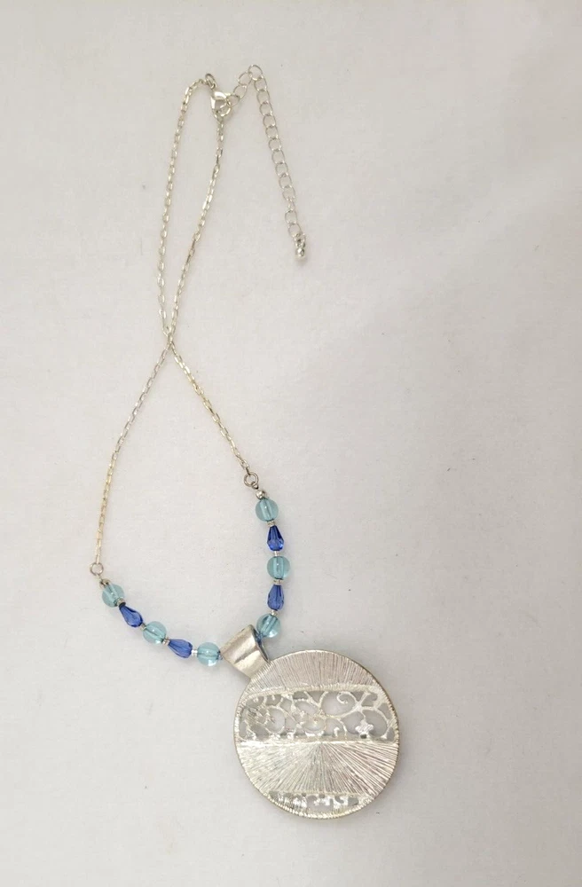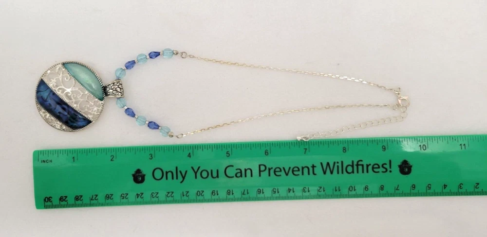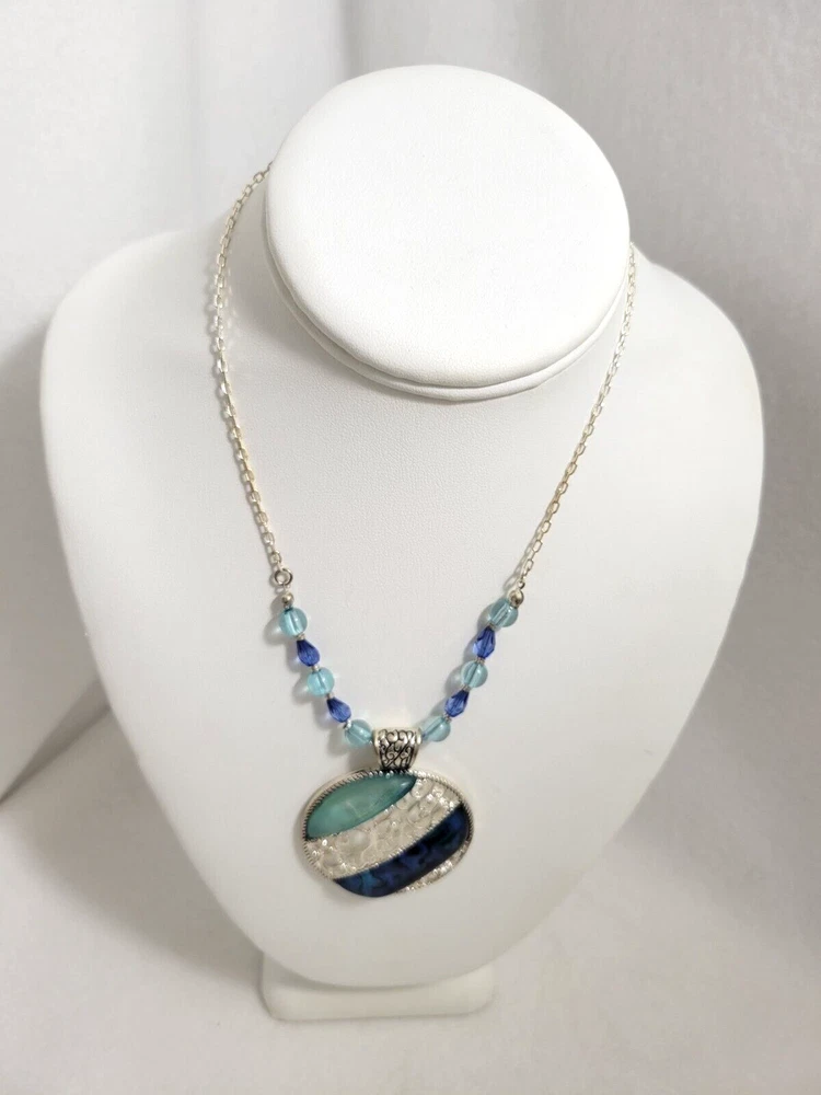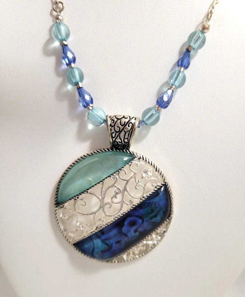 Necklace Round Pendant Blue Green Statement Silver Toned Silver Swirls Resin Each item is carefully packaged to prevent any damage and is shipped immediately with tracking.