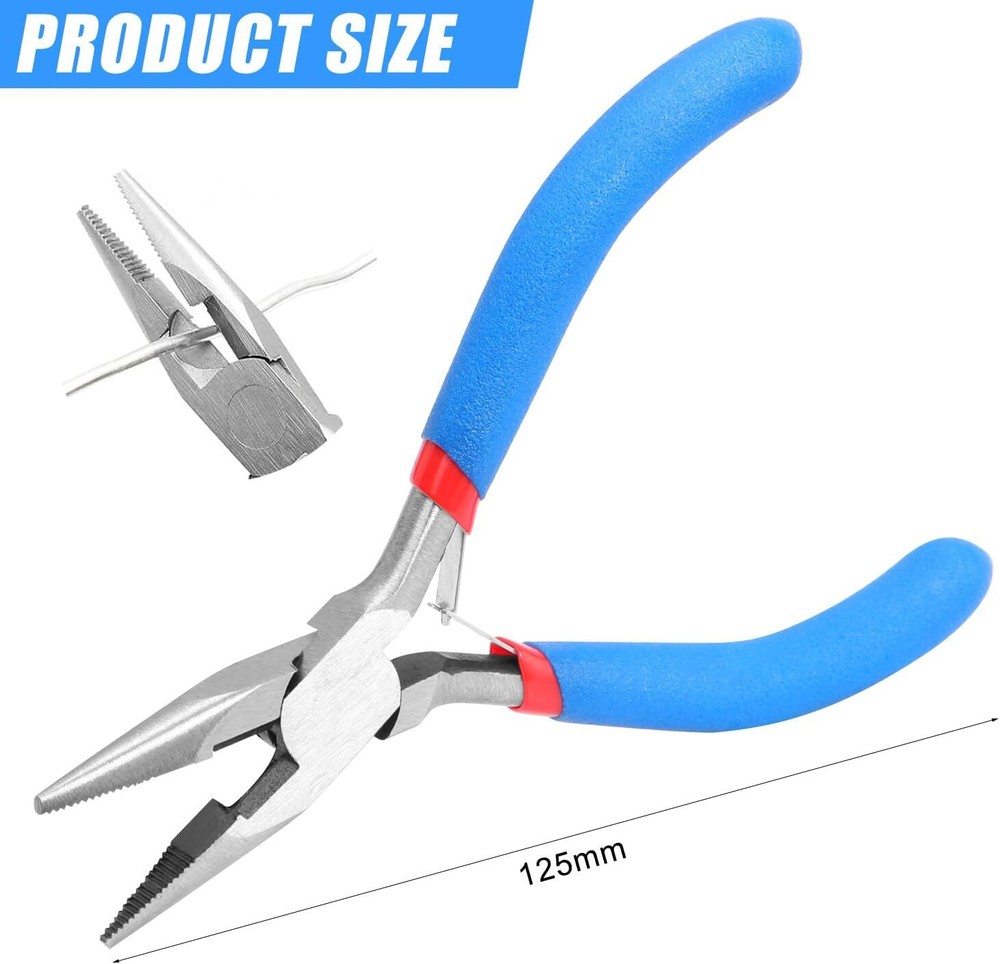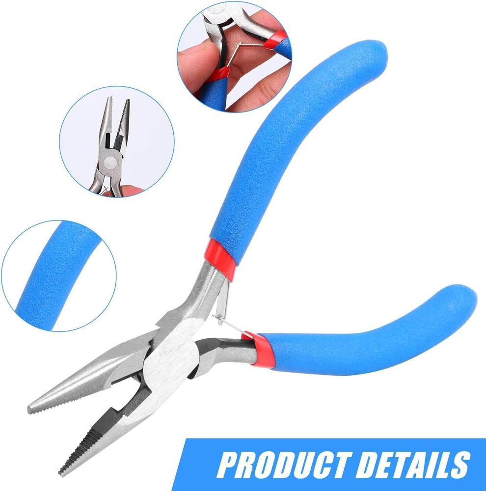 About this item High Hardness Material: Needle nose pliers are made of high-quality chrome vanadium steel. They are rust-resistant, scratch-resistant, not easy to deform and break, and durable. Non Slip and Comfortable Grip: The precision jewelry making pliers are covered with a double-layer rubber sponge non-slip handle, comfortable to the touch, sturdy, and durable. Needle Nose Pliers for Jewelry Making: The small jewelry pliers are perfect for gripping, bending, straightening, crimping, opening and closing jump rings, holding small items, and shaping wire. Effort-saving Design: The stronger spring and anti-skid handle of the small pliers ensure higher working efficiency and save more effort for you. Easy to use, don’t take much space. Wide Application: Jewelry making tools are perfect for making bracelets, repairing necklaces, making earrings, making keychains, lanyard making, and other jewelry repair. It is a perfect gift for DIY lovers and craft enthusiasts. Dimensions: 5"L x 2.4"W