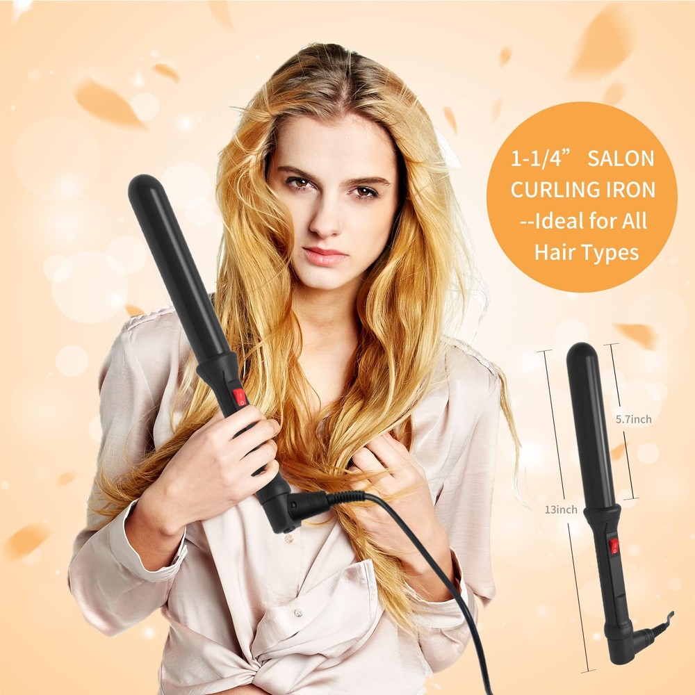 ceramic Argan oil coated barrel curling irons create smooth,soft and fashion salon glamorously shining curling hair for you. 1.Ceramic Keratin and Argan oil coating: Our ceramic Keratin and Argan oil coating effectively minimizes heat damage by providing a protective barrier between the hair and the iron.It eliminates residue build up and clean for mess-free styling.Create desirable silky smooth,and frizz-free locks effortlessly. 2.Negative ions technology: Advanced ceramic glaze technology,release a large number of negative irons and small molecules minerals directly penetrate into the hair,promote the formation of amino acid and protein,make hair strong luster,curling hair does not hurt at the same time. 3.Heats up fast: High heat combined with ceramic coated barrel curling iron ultra-fast heat up,the curling iron gives you a professional-quality styler with a ceramic heater.Reach temperatures up to 450 degrees(F) in just 30 seconds and you can style quickly and efficiently. 4.Ergonomic design: Our smooth,revolving handle,made of quality lightweight and heat-resistant materials,maximizes turning control to cuil effortless around hair.Our 360 degree swivel connection prevents tangling. 5.Universal design: Worldwide dual voltage 110v-240v,you are able to use it anywhere.(The electrical plug is designed for US and you just need a correct plug adapter when travel other countries.) WHAT YOU GET 1 hair curler 1 safety glove 1 safety mat 1 instruction and