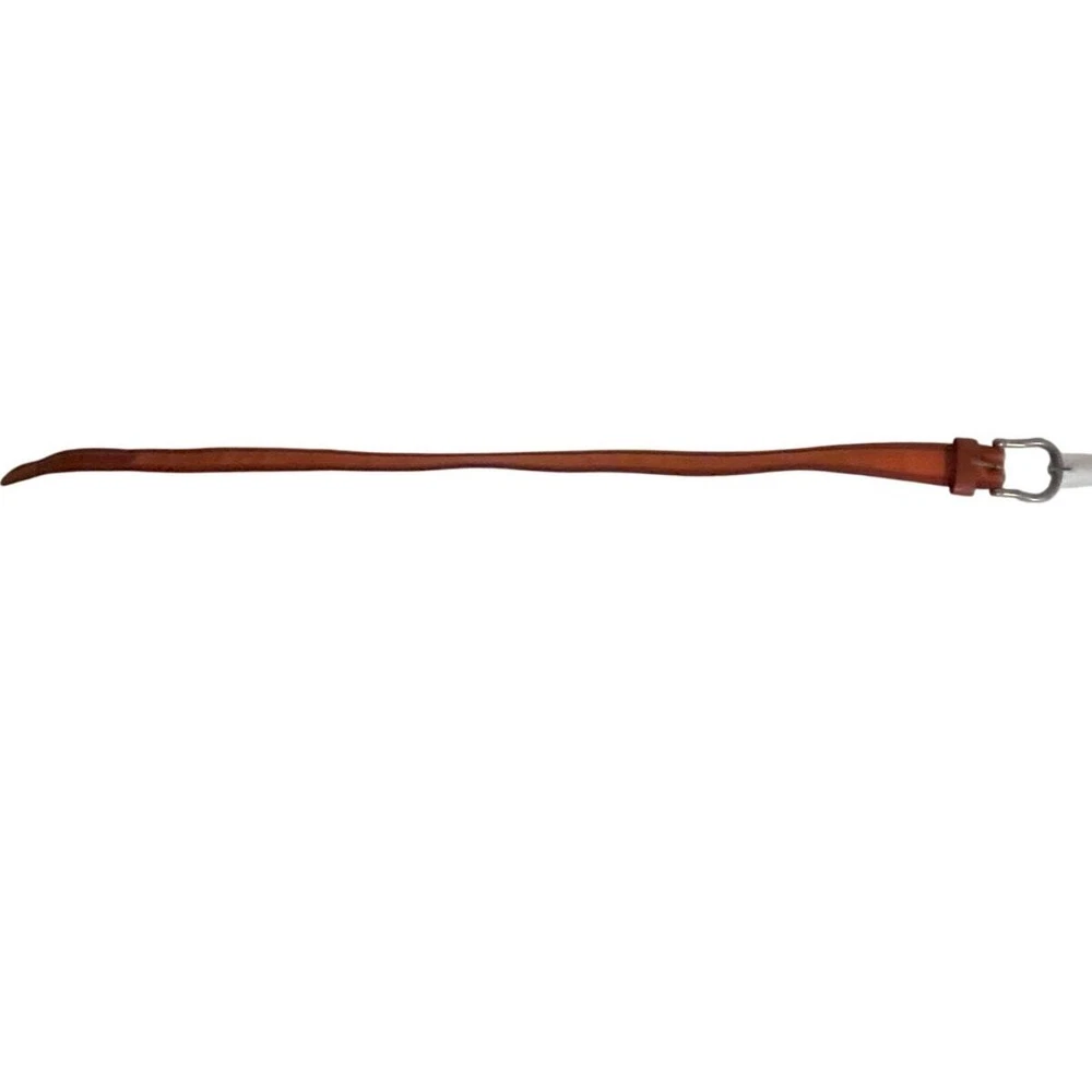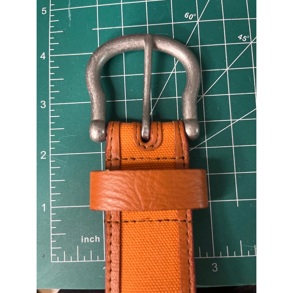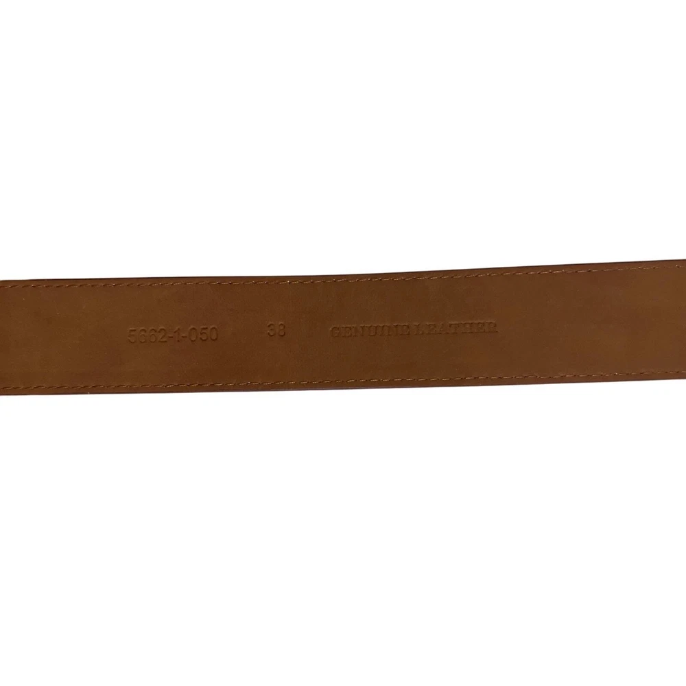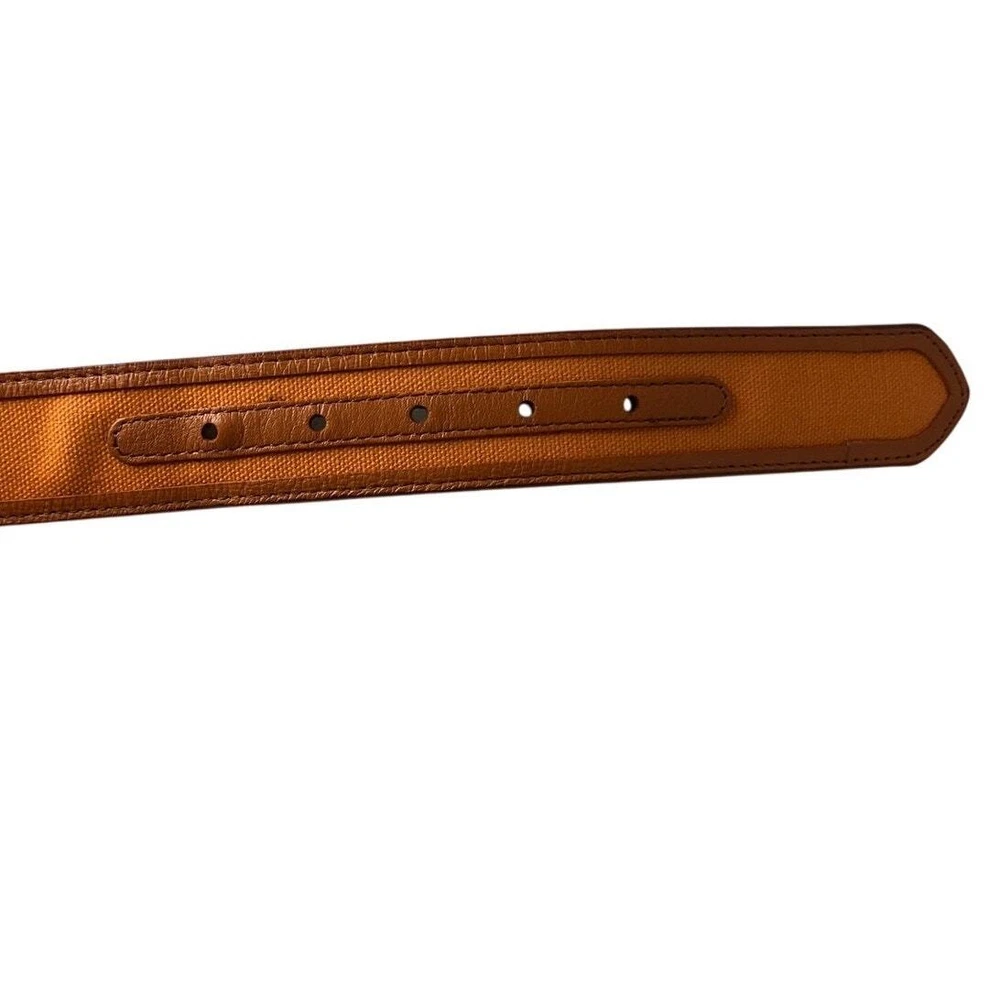 Preowned Neiman Marcus Brown & Orange Leather Belt Size 38 Colorblock Pattern Antiqued Silver-Tone Hardware Buckle Closure The brand is not stamped in the belt but I have one just like it in Blue and it was purchased at Neiman's.