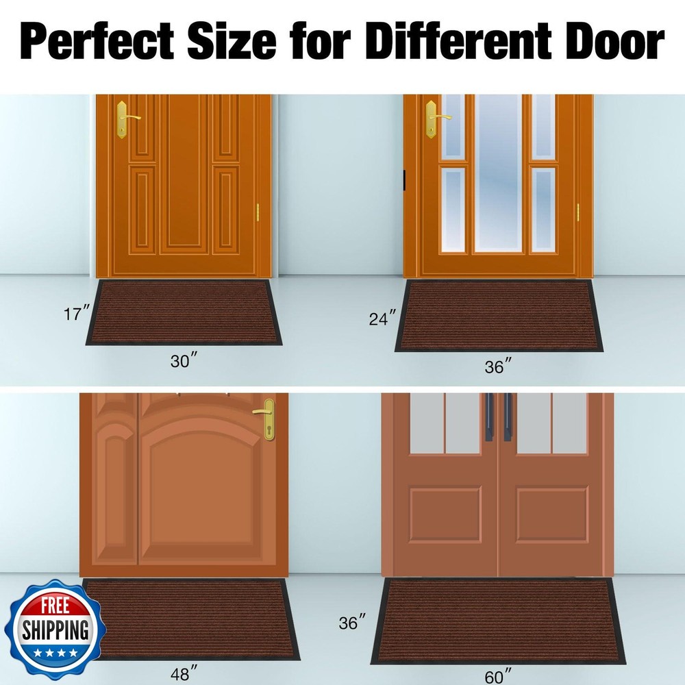 Neiza Front Door Mat Indoor Outdoor Entrance 60"x36", Heavy Duty Ribbed Non Slip Mat, Absorbent Dirt Moisture Trapper Waterproof Rubber Backing Doormats, Low Profile Washable Front Doormat, Brown Features Non-Slip Safety & Thin Versatility: The NEIZA front door mat is made from premium polyester and a 0.25-inch thickness soft PVC backing, ensuring a long-lasting material that is resistant to wearing out and sun. Rubber padding layer is added to the edge of the doormat to prevent water from leaking onto the floor. Perfect as an indoor door mat for tight entryways or an outdoor door mat for patios, its non-slip mat design ensures safety while blending seamlessly into any space Grooved Design: Traps Dirt, Blocks Mess, Neiza door mat features a groove design which is engineered for door mats outdoor entrance use. The ribbed texture actively scrapes mud, dust, and moisture from shoes. Ideal for outdoor mats for front door or indoor entryway zones, it locks debris deep within grooves to keep muddy mats for indoor contamination at bay Pet-Friendly Durability & Zero Shedding: Built to withstand playful paws, this dog mat features tear-resistant fibers that resist claws and heavy foot traffic. Whether used as a front door mat indoor entrance solution or a doormat outdoor entrance, its zero-shedding design ensures long-lasting, pet-safe performance Effortless Cleaning & All-Weather Resilience: A top choice for outdoor mats and indoor door mats for entryway, simply rinse with a hose, vacuum, or shake off debris. Crafted from premium waterproof mat polyester, it withstands rain, snow, and UV exposure—ideal for outdoor front door mat or garage floor mat use Eco-Conscious Protection for Every Entry: From door mats indoor entrance to outdoor doormats for outside entry, this reusable mat reduces environmental impact. Its classic design complements floor mats for house décor while delivering anti-slip, anti-moisture defense for front door mat outside entrance or laundry room scenarios Shipping Free & Fast Shipping: We offer free shipping to most of the USA with a normal delivery time of 3-7 days. However, due to the current situation, additional delivery time (up to 3 weeks) may be required for some items. Alternative Carriers: We may use alternative carriers (e.g., USPS, FedEx, UPS) to ensure your package arrives safely and on time. Due to the use of multiple carriers, we are unable to provide a tracking number automatically. Handling Time: Orders are processed and shipped within 1-2 business days of receiving cleared payment. Shipping Restrictions: Shipping to Alaska, Hawaii, Puerto Rico, Guam, and other US territories may incur shipping charges or delivery restrictions. Please contact us before ordering, or your order can be refunded/cancelled. State Restrictions: Certain items may not be shipped to California due to state regulations. Contact for Tracking Updates: If you require tracking updates or have any concerns about the delivery of your order, please feel free to contact us, and we will be happy to assist you. Return Policy 30-Day Hassle-Free Returns: If you are not completely satisfied with your purchase, you can return the item for free within 30 days of receiving it for a full refund or exchange. Easy Return Process: Contact us, and we will provide you with a prepaid return shipping label and detailed instructions. No Restocking Fee: There are no restocking fees for returns. However, the buyer is responsible for return shipping costs if the return is not due to a seller"s error. Refund Processing: Refunds will be processed within 1 business day of receiving the returned item in its original condition. Feedback Your feedback is extremely important to us. We strive to provide the best products and customer service possible. If you are satisfied with your purchase, please take a moment to leave us a positive review. If you have any concerns or issues with your order, please contact us before leaving negative feedback. We are committed to resolving any problems and ensuring your satisfaction. Contact Us If you have any questions or concerns, please feel free to reach out to our customer support team. You can contact us through the eBay messaging system. We are available Monday to Friday, 9:00 am to 5:00 pm EST, and we will do our best to respond to your inquiry within 24 hours. Thank you for supporting our small family business!