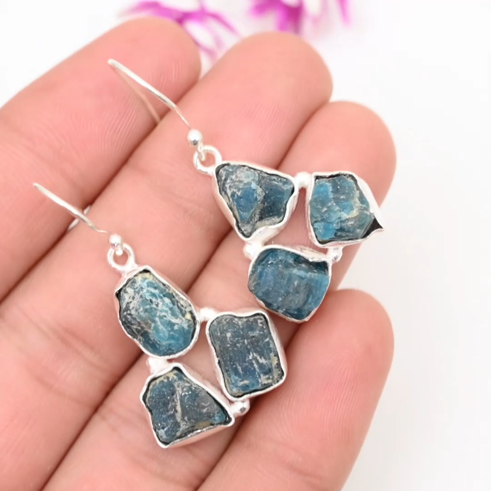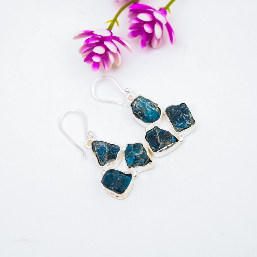 Diamond Clarity Grade:N/ATheme:Beauty, Bohemian, Ethnic, Halloween, LoveClosure:HookCollection:HandmadeItem Length:N/ANumber of Diamonds:N/ACut Grade:ExcellentSecondary Stone:Neon Blue ApatiteMain Stone Color:BlueDiamond Color Grade:N/AMain Stone Treatment:Not EnhancedOccasion:Anniversary, Birthday, Christmas, Engagement, Father's Day, Mother's Day, Valentine's Day, WeddingEar Area:LobeType:EarringsCountry of Origin:IndiaColor:SilverCountry/Region of Manufacture:IndiaMain Stone:Neon Blue ApatiteNumber of Gemstones:6Metal Purity:925Total Carat Weight:10 carat and aboveMain Stone Shape:Same As PictureBase Metal:Sterling SilverMain Stone Creation:NaturalColored Diamond Intensity:N/AStyle:Dangle/DropSetting Style:BezelShape:N/AMaterial:Stone, GemstoneMetal:Sterling SilverBrand:HandmadeCertification:N/A